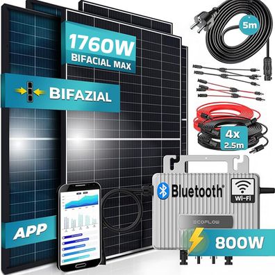 • SUNNIVA® Balkonkraftwerk Black Bifazial 1760W/800W mit Ecoflow Wechselrichter