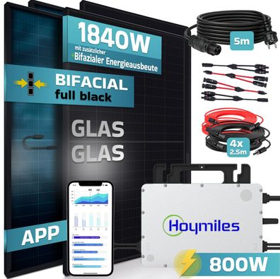 • SUNNIVA® Balkonkraftwerk 1840/1500W Solaranlage Hoymiles 1500 Bifazial Fullblack