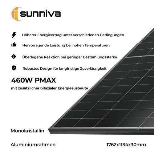 SUNNIVA® Solarmodul Solarpanel FULL BLACK Bifacial Bifazial Glas/Glas 460 Watt