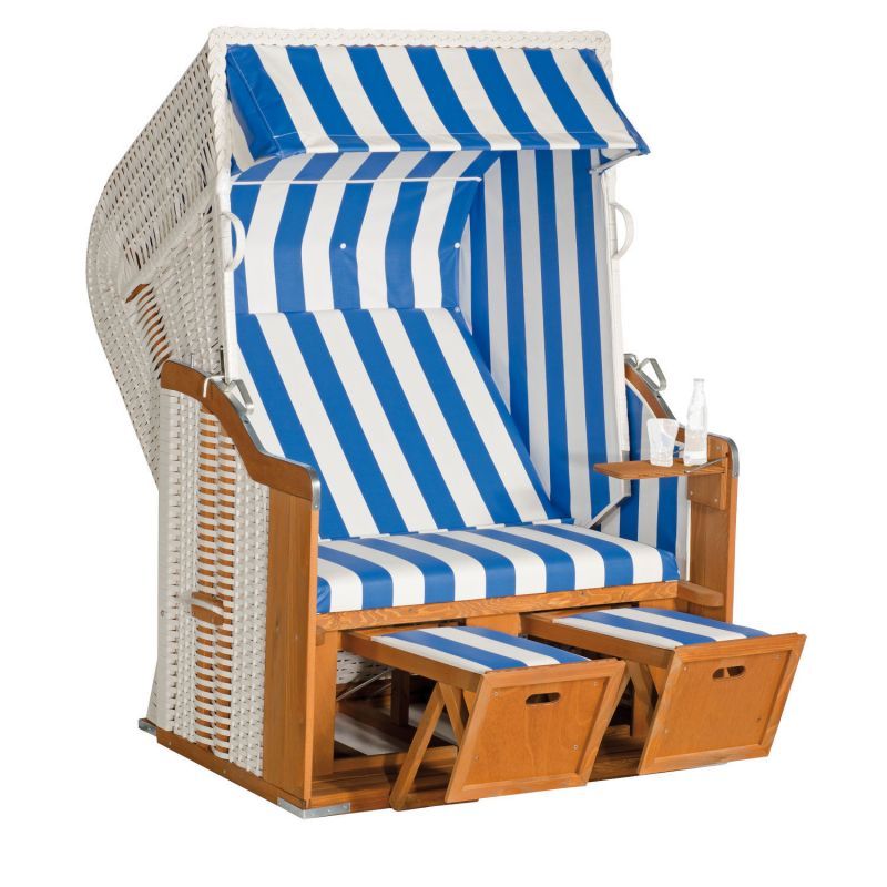 Sonnenpartner SunnySmart Rustikal Garten-Strandkorb 250 BASIC 2-Sitzer weiß/blau PVC-Stoff