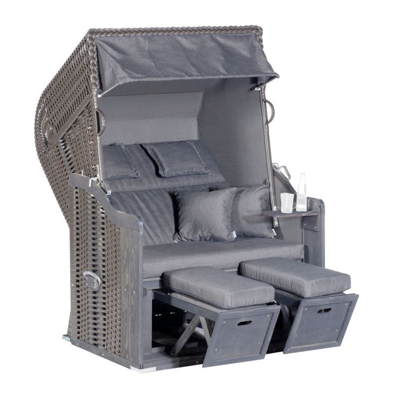 Sonnenpartner SunnySmart Rustikal Garten-Strandkorb 255 PLUS 2-Sitzer anthrazit mit Kissen