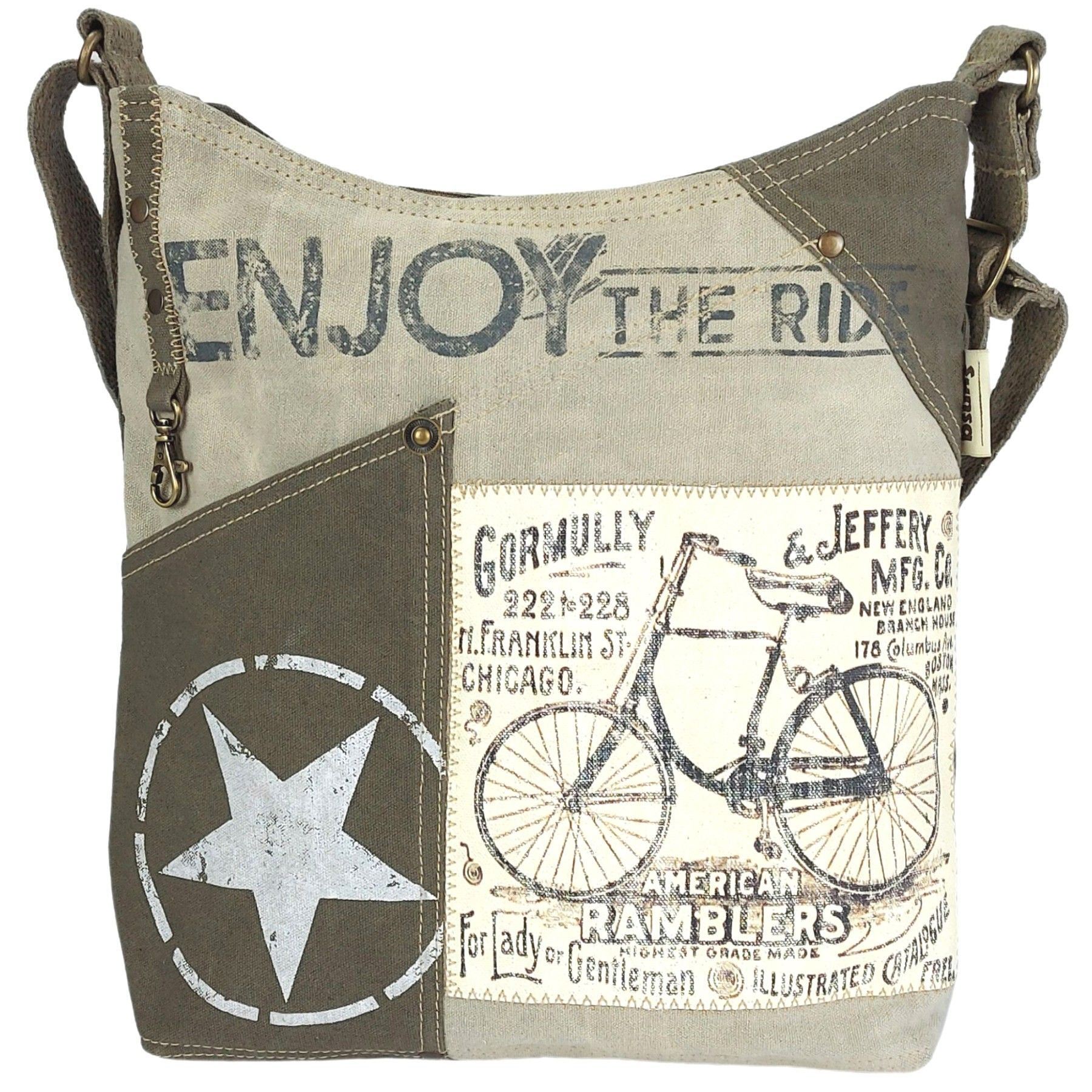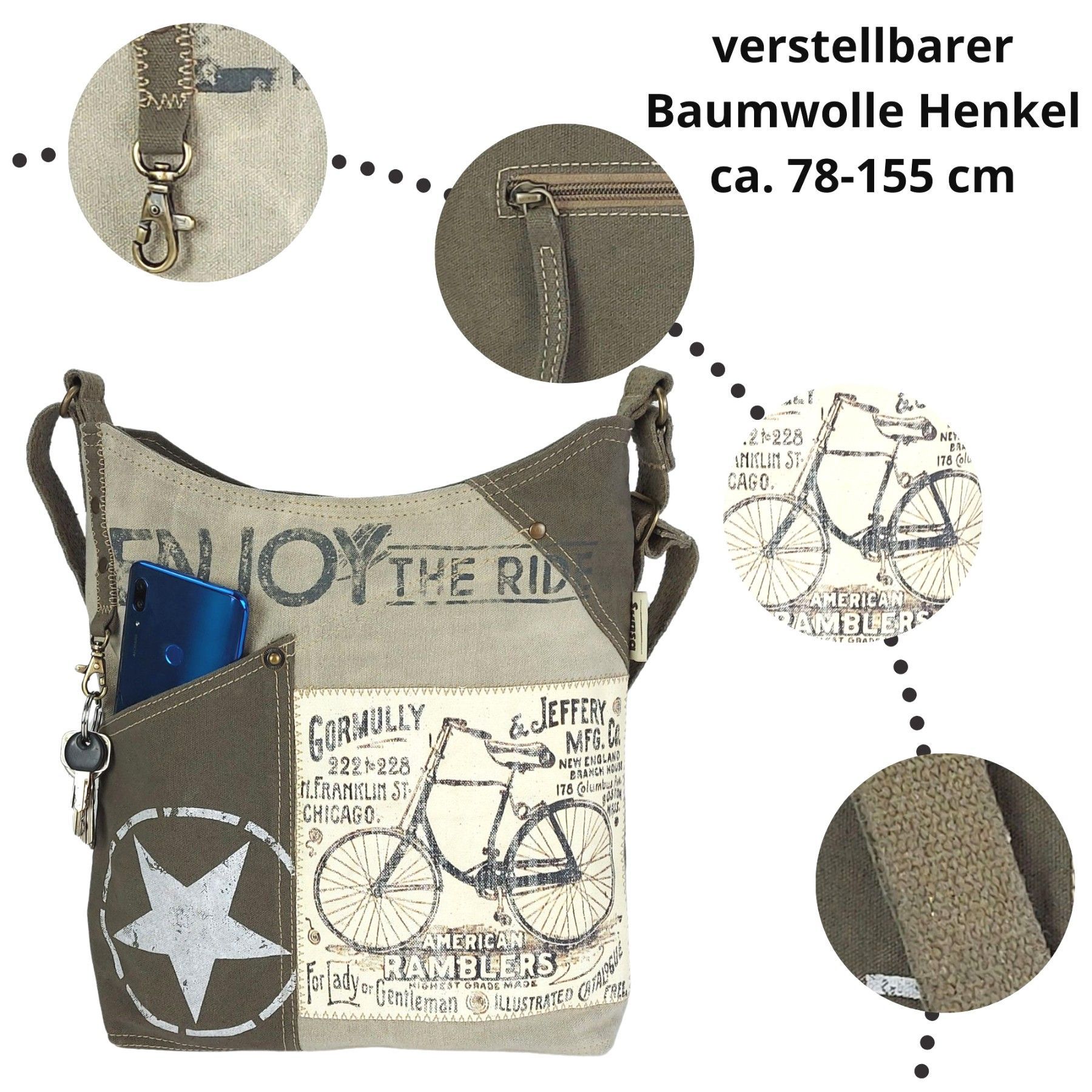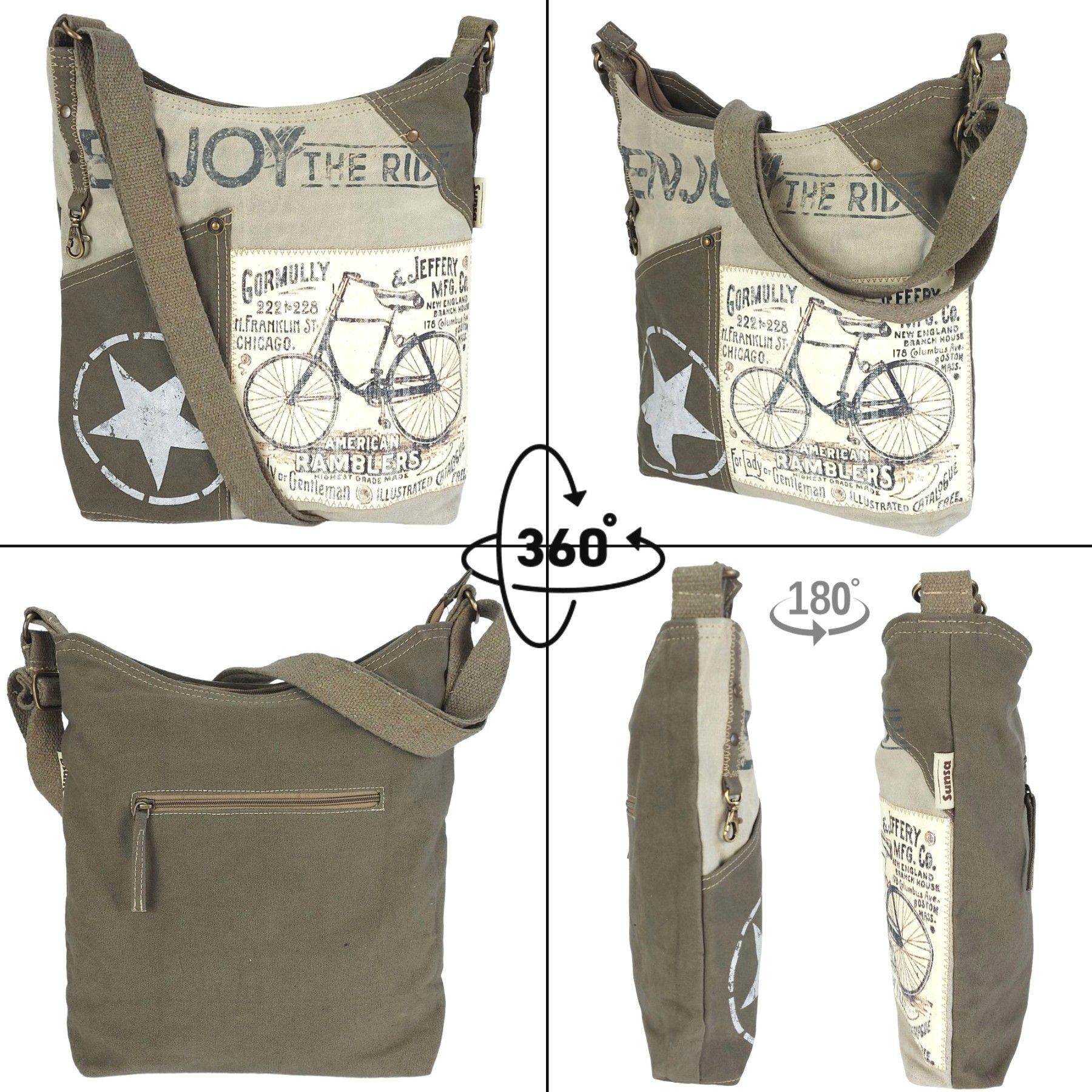 Sunsa Sunsa Canvas Umhängetasche Vintage mit Fahrrad Motiv Crossbody Bag Vegane Hobo Tasche