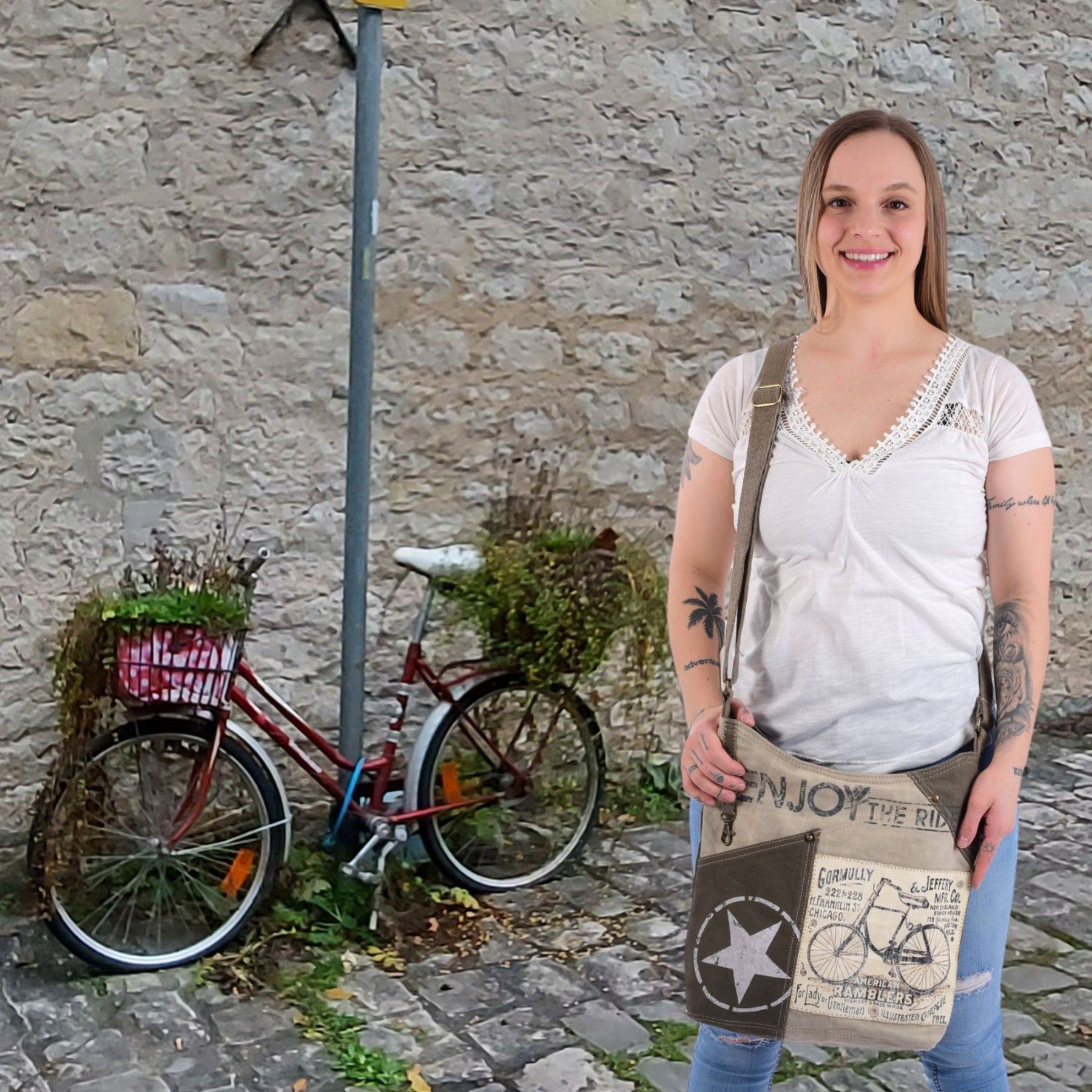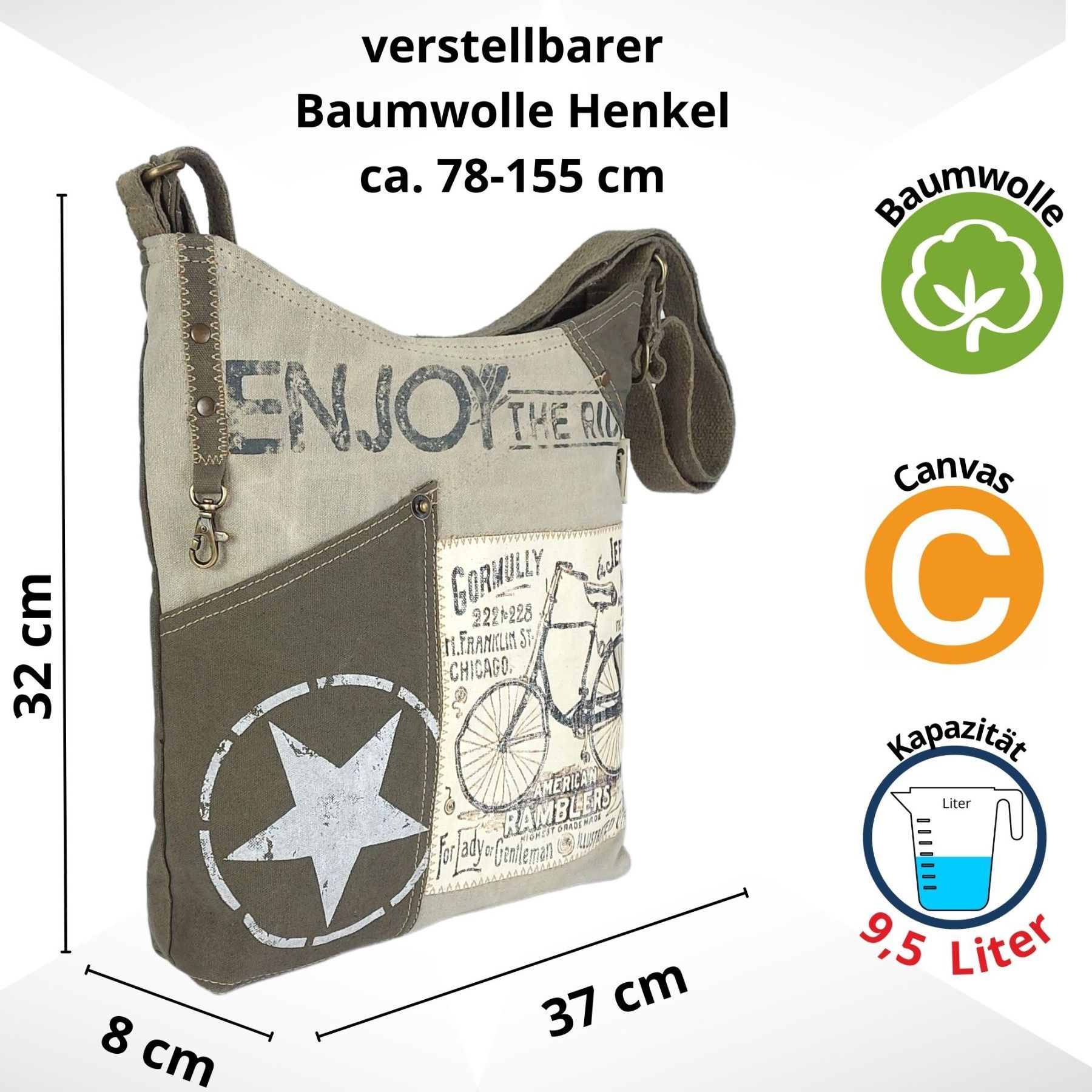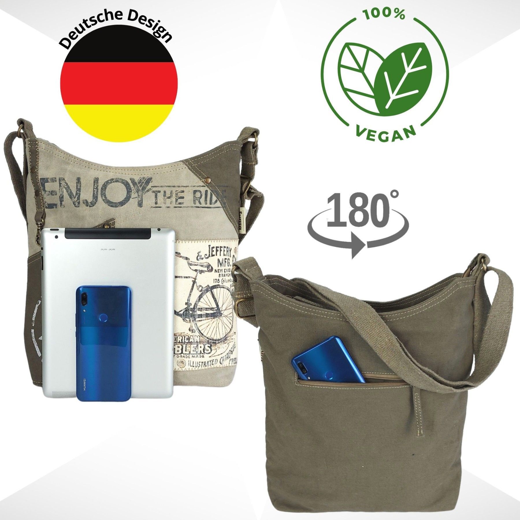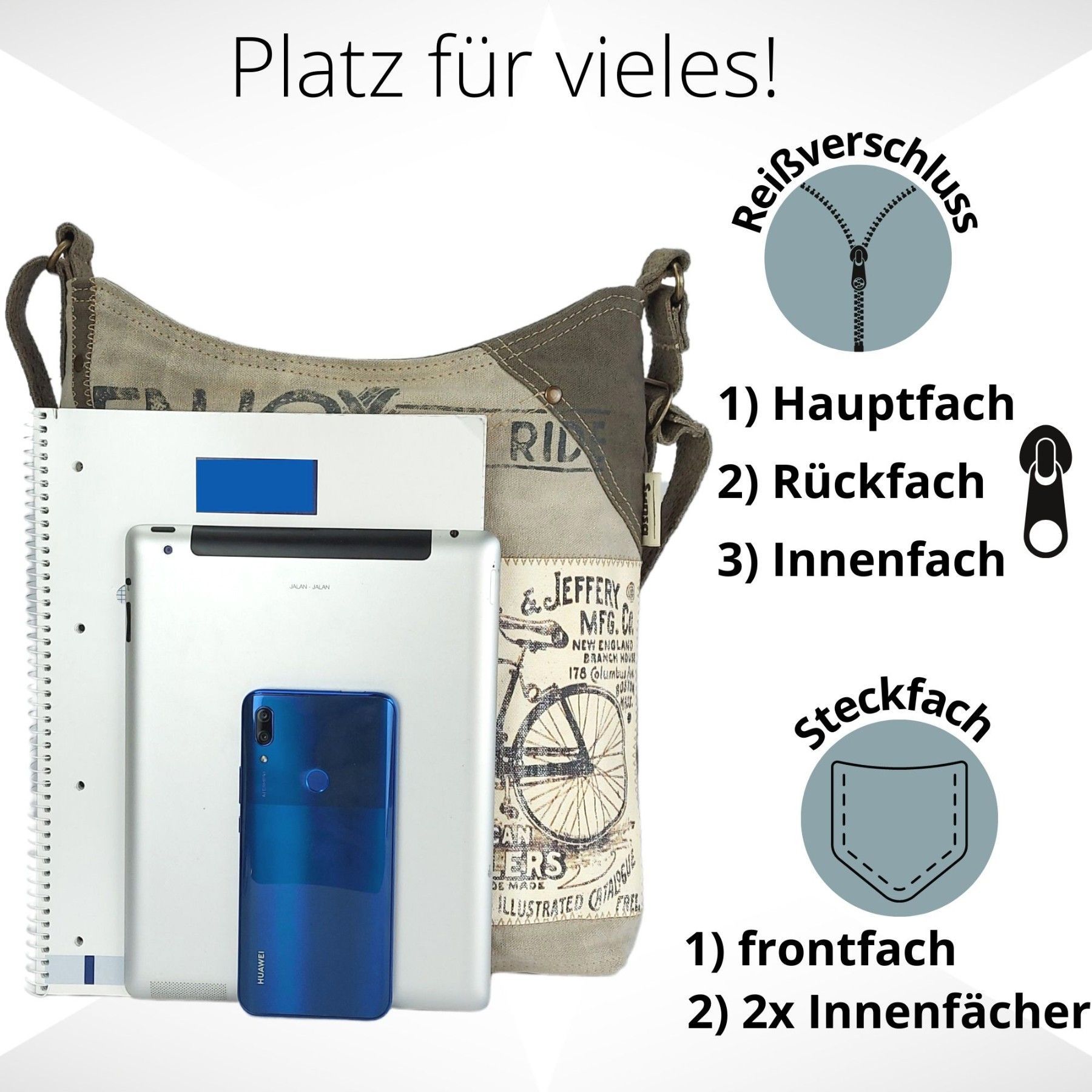 Sunsa Sunsa Canvas Umhängetasche Vintage mit Fahrrad Motiv Crossbody Bag Vegane Hobo Tasche