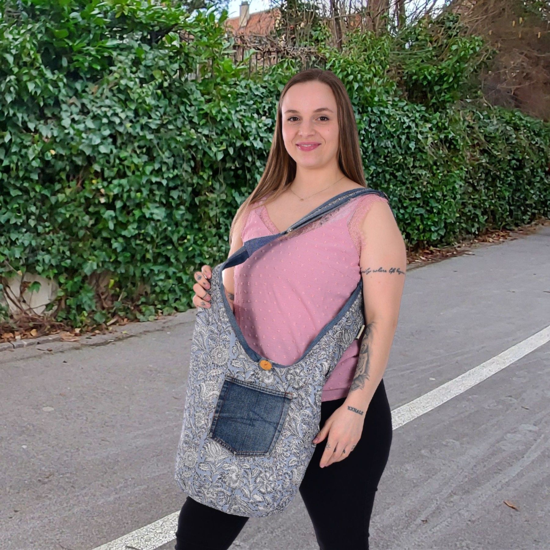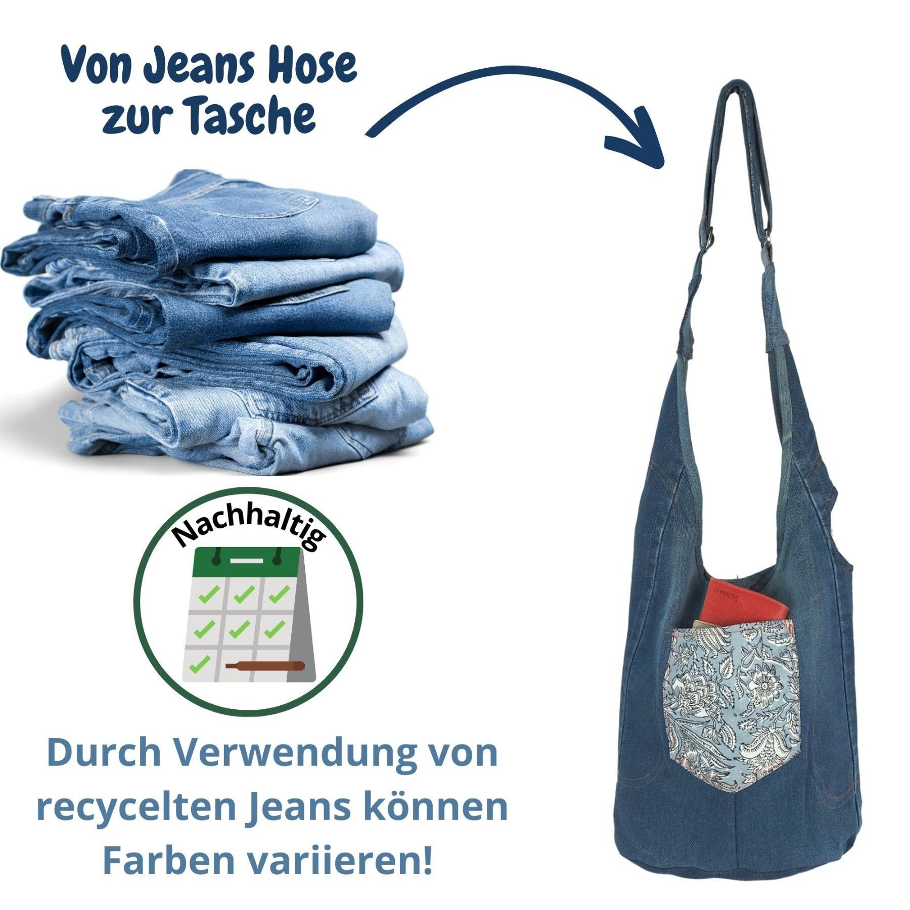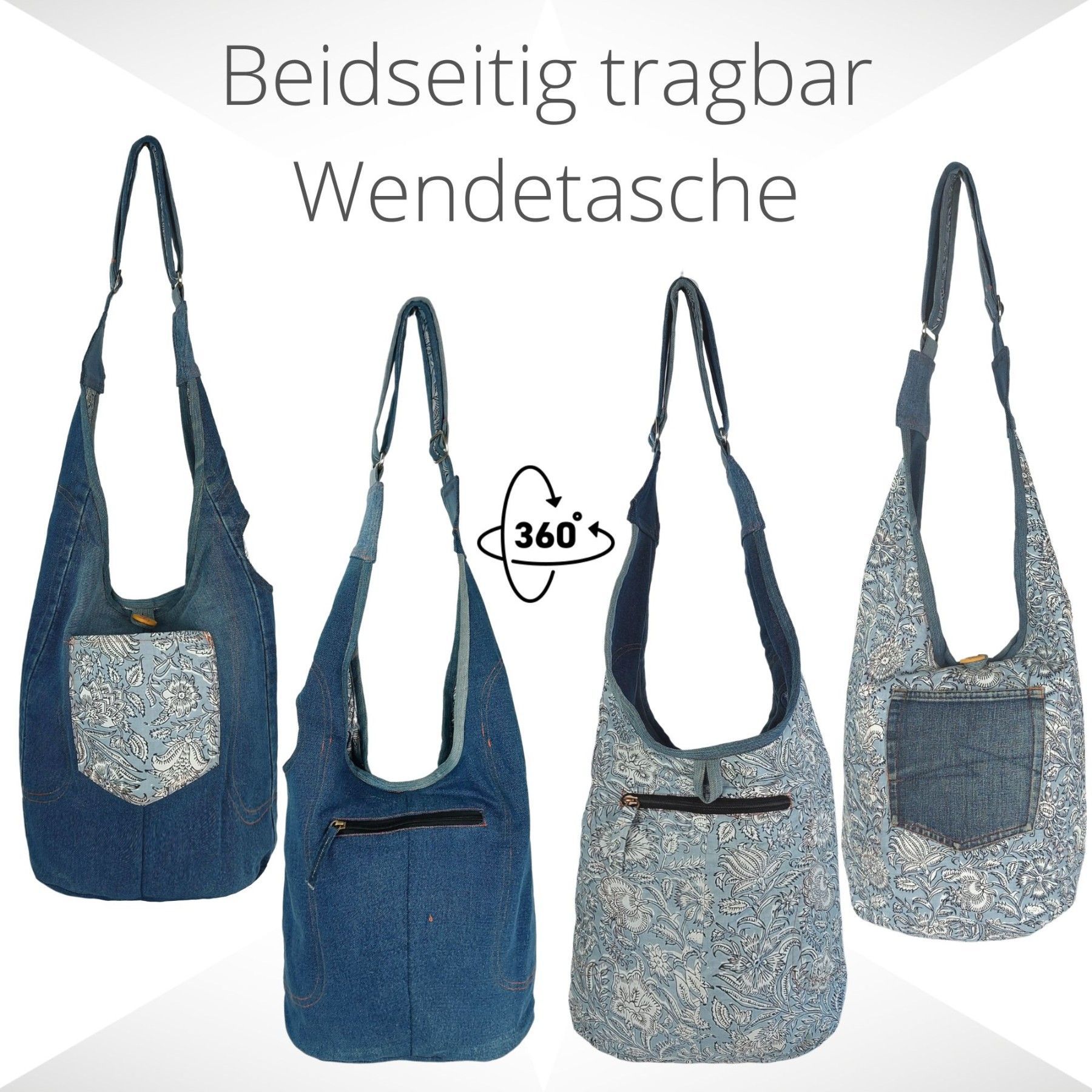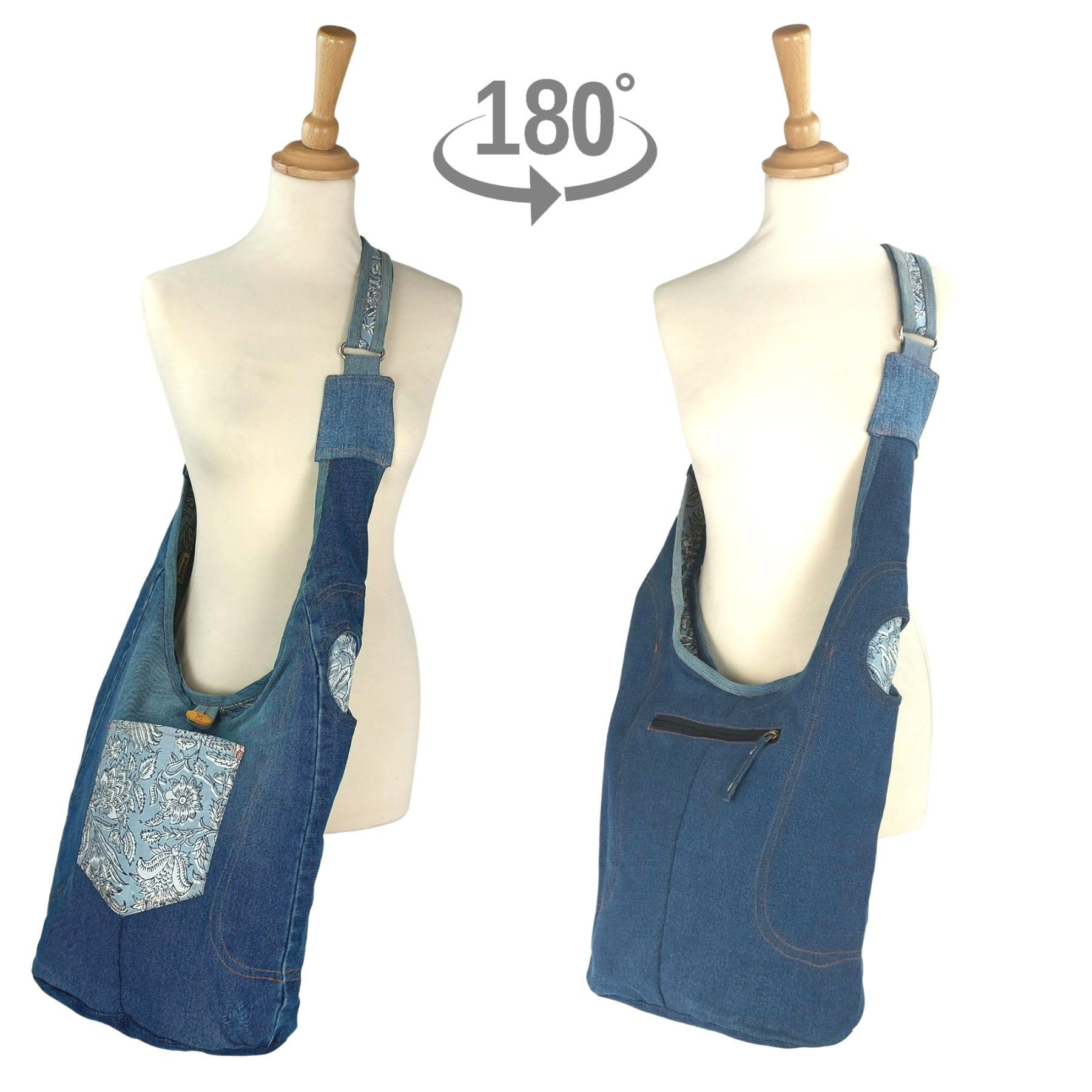Sunsa Sunsa Hobo Umhängetasche nachhaltige recycelter Jeans & Baumwolle Schultertasche