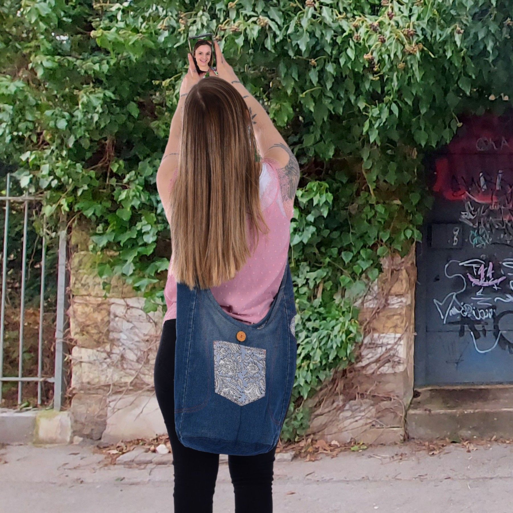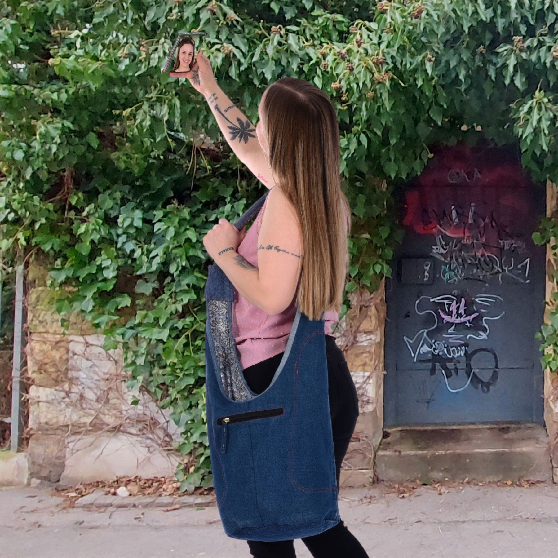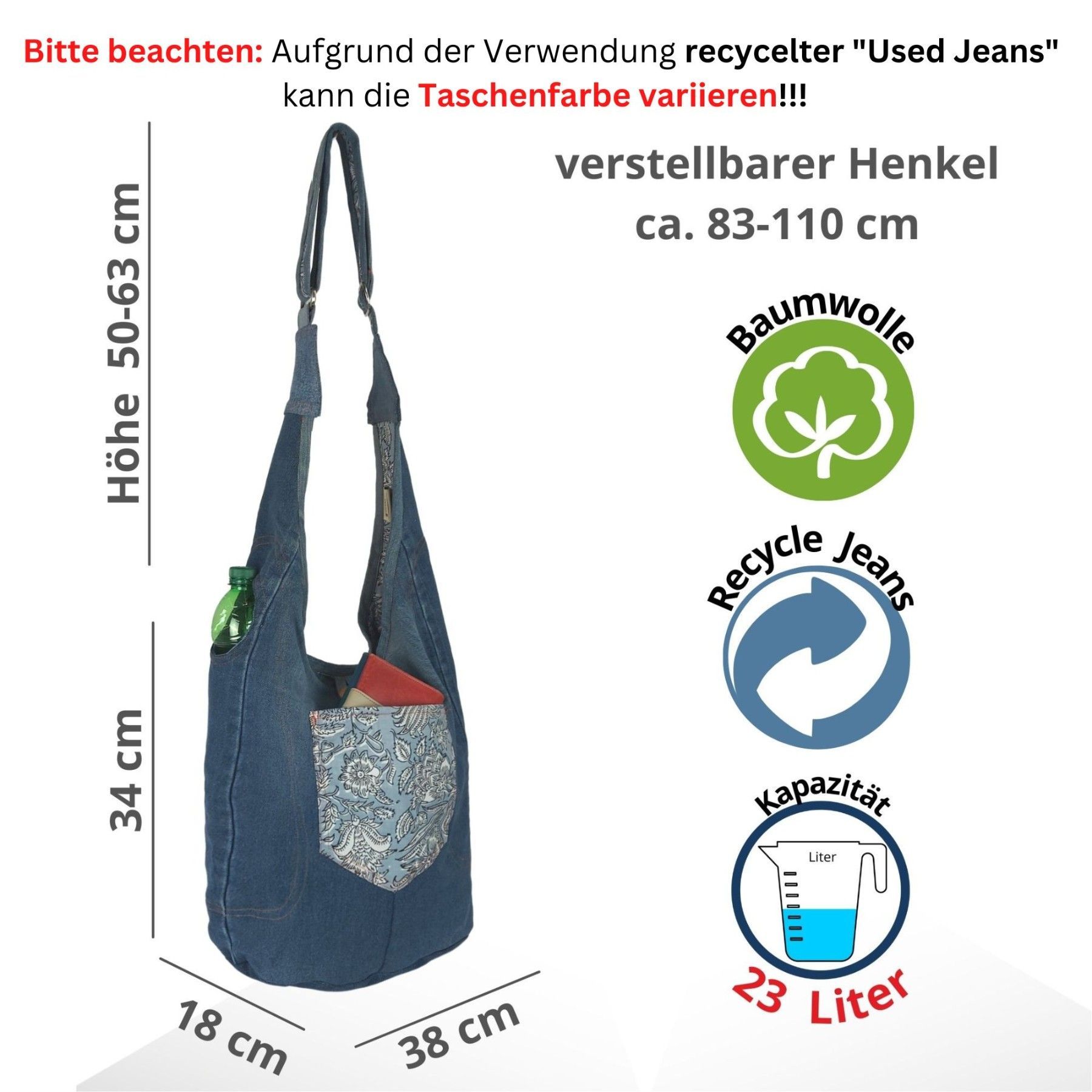 Sunsa Sunsa Hobo Umhängetasche nachhaltige recycelter Jeans & Baumwolle Schultertasche