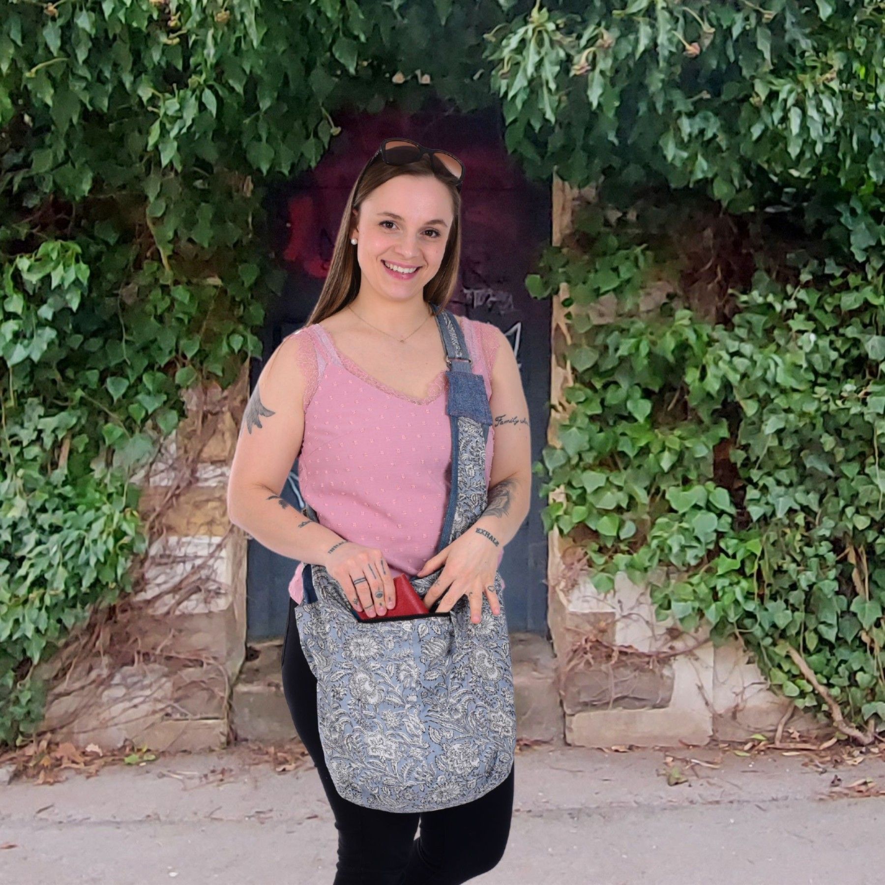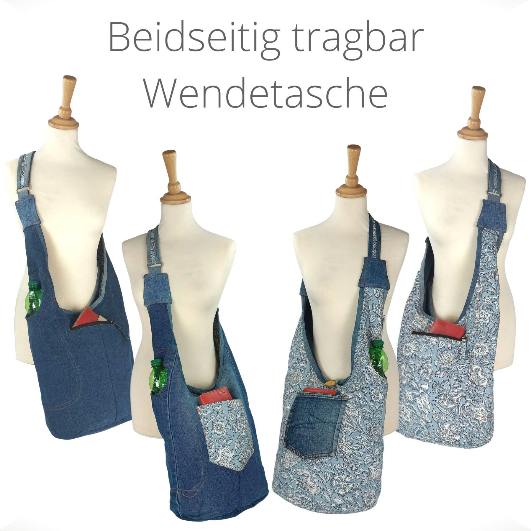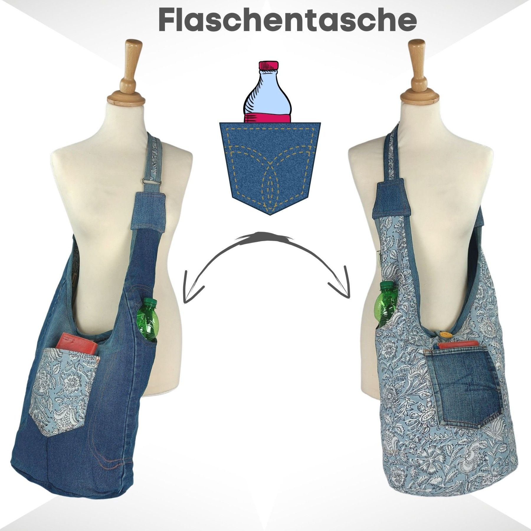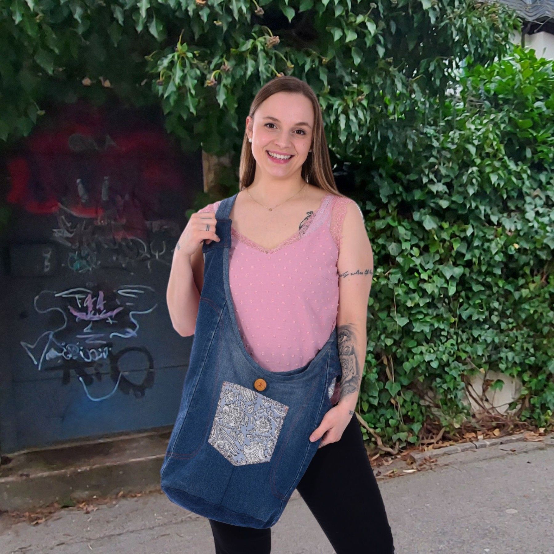 Sunsa Sunsa Hobo Umhängetasche nachhaltige recycelter Jeans & Baumwolle Schultertasche
