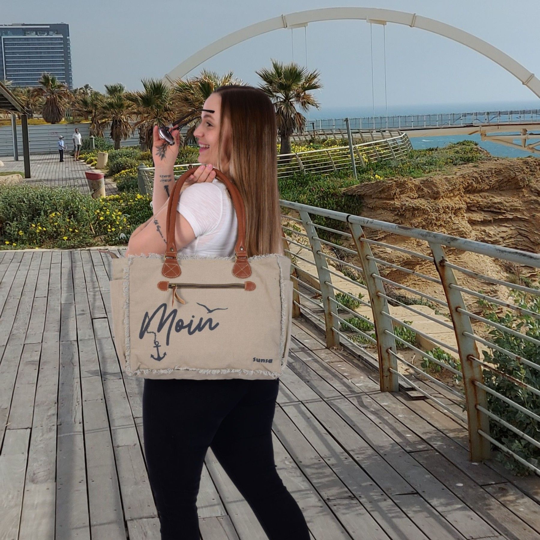 Sunsa Sunsa Maritim Handtasche Vintage Tasche Canvas Schultertasche Damentasche Shopper