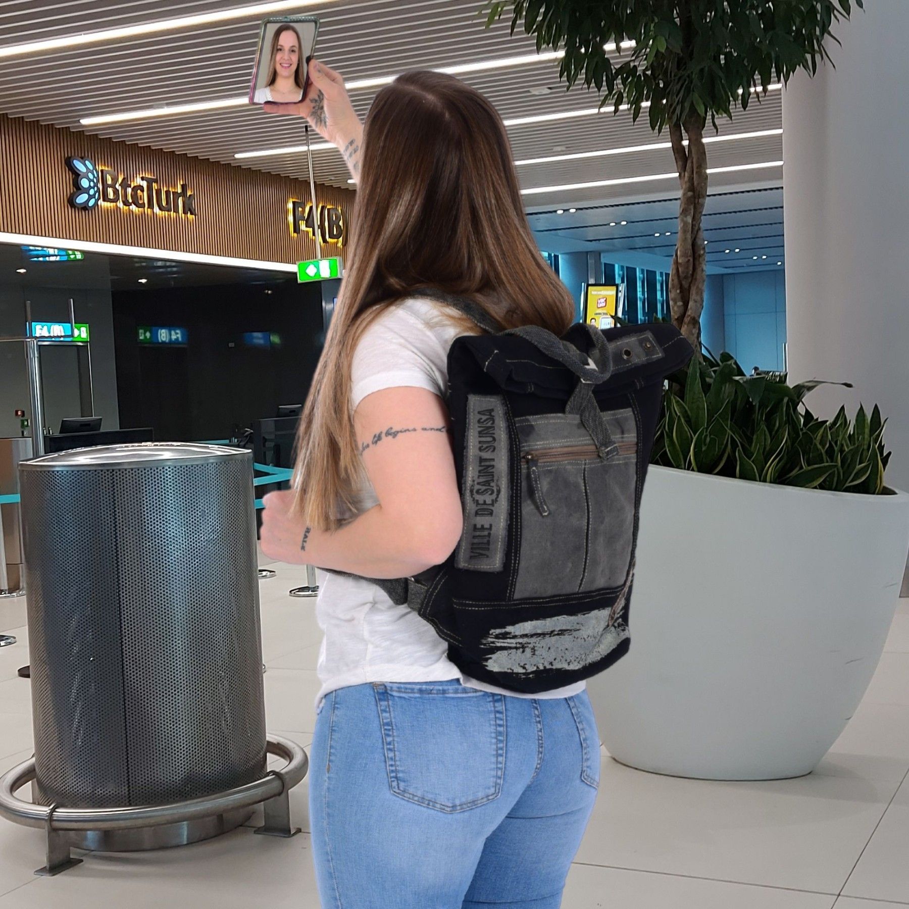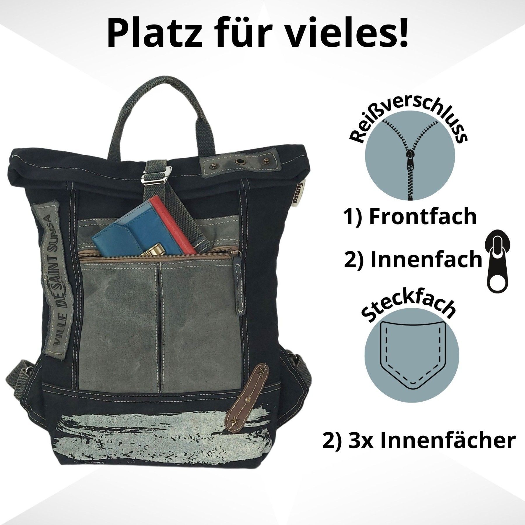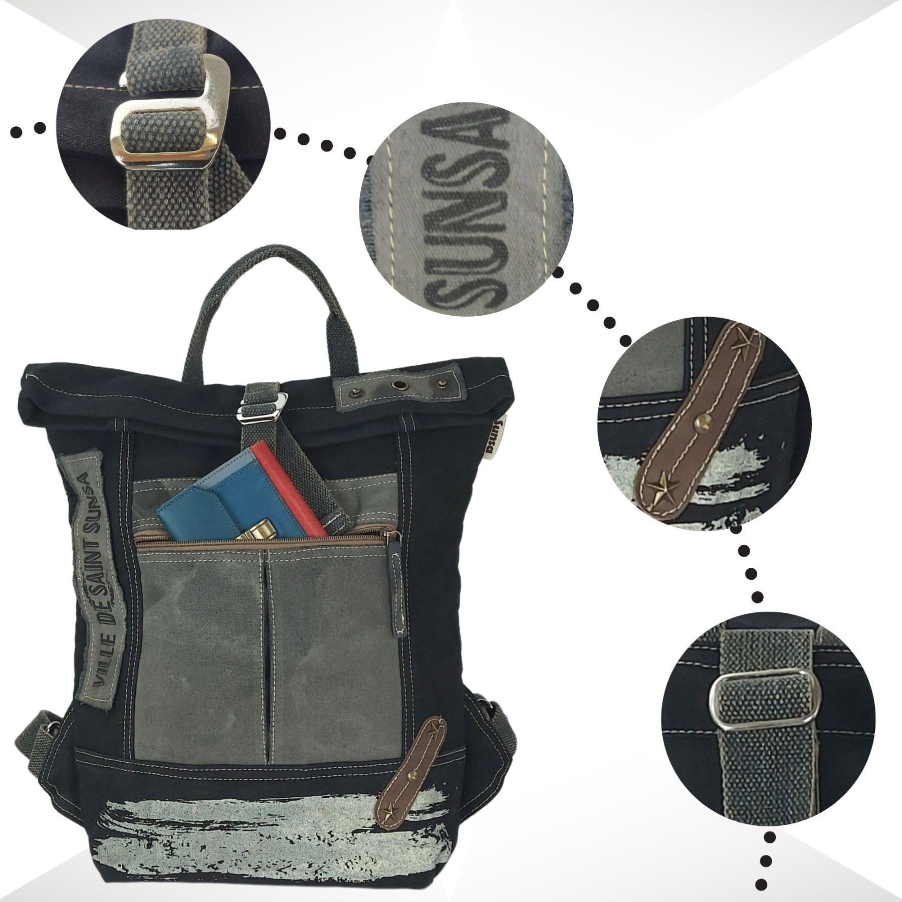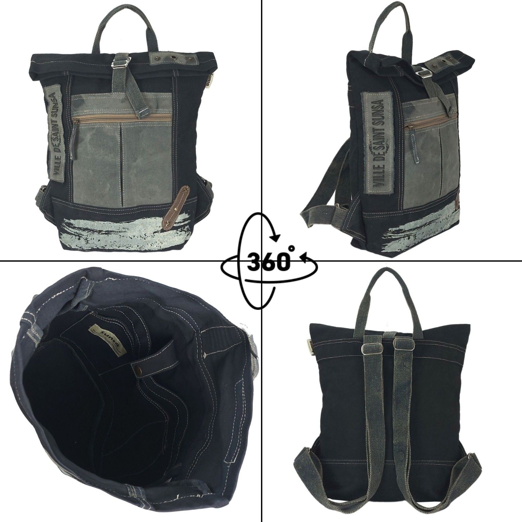 Sunsa Sunsa Rucksack Canvas Backpack Vintage Cityrucksack große schwarze Freizeitrucksack