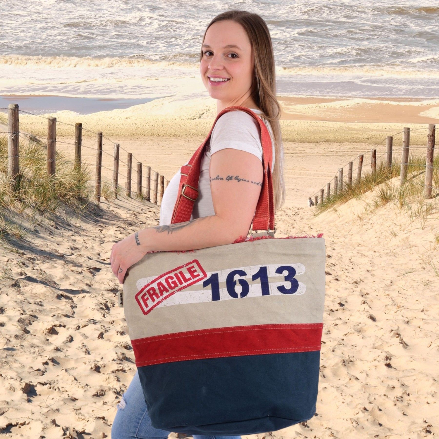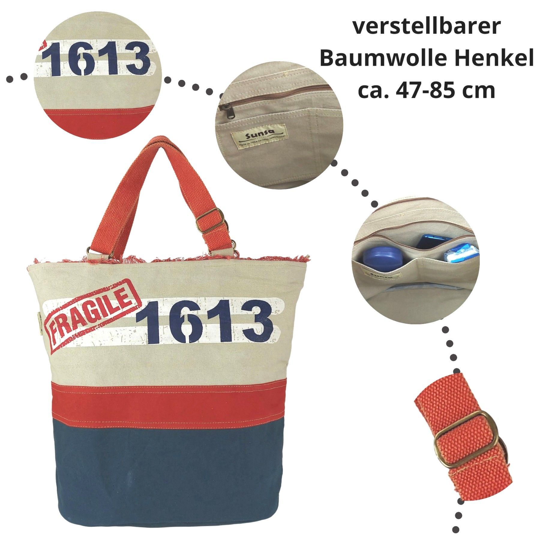 Sunsa Sunsa XXL Vegane Tasche, Vintage Badetasche. Canvas Shopper Große Schultertasche