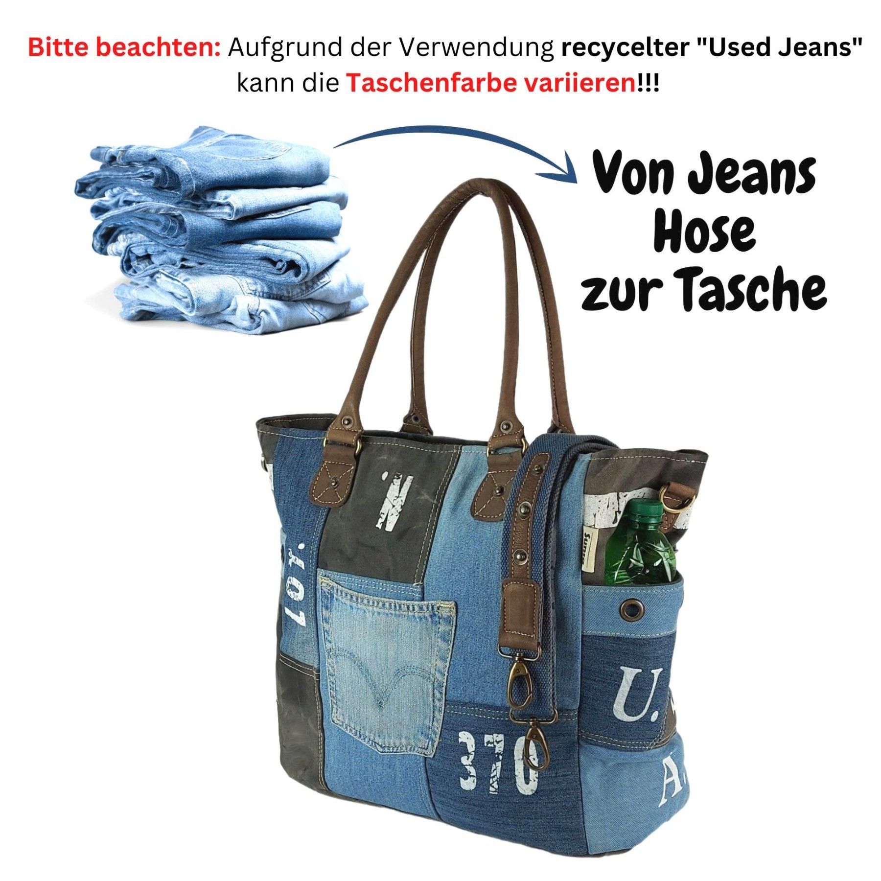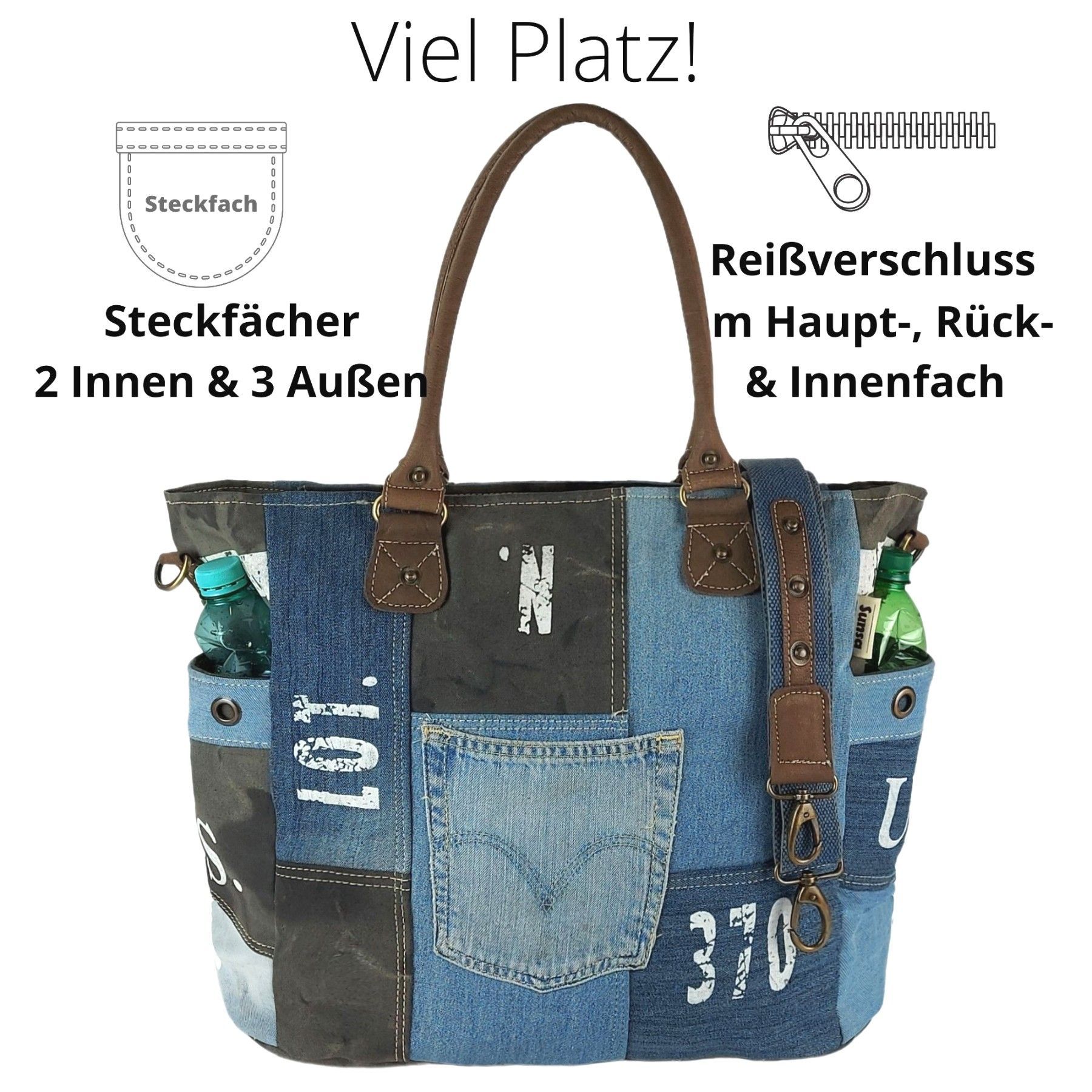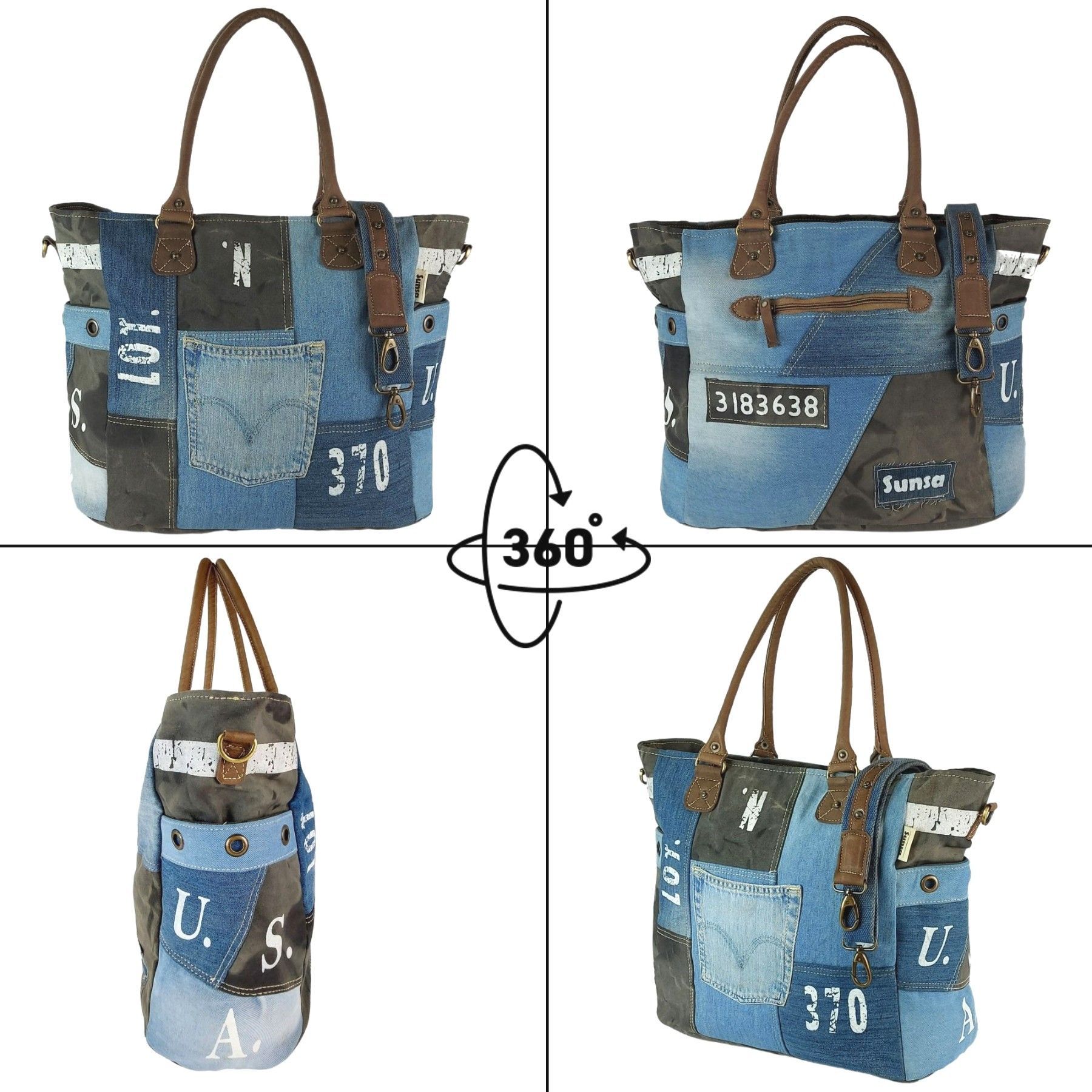 Sunsa Sunsa XXL Vintage Tasche, Badetasche Weekender Shopper aus recycelte Jeans & Canvas