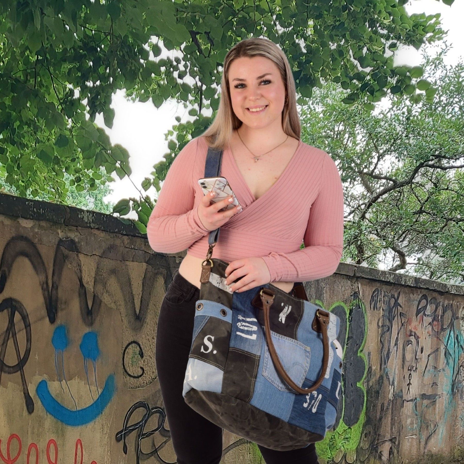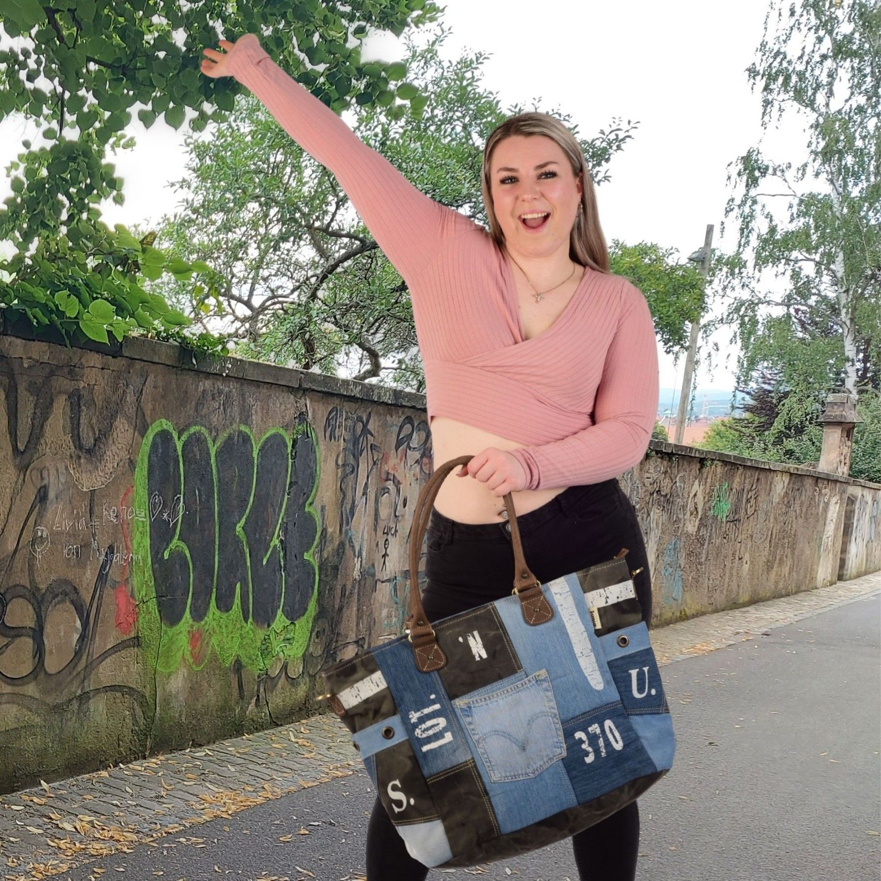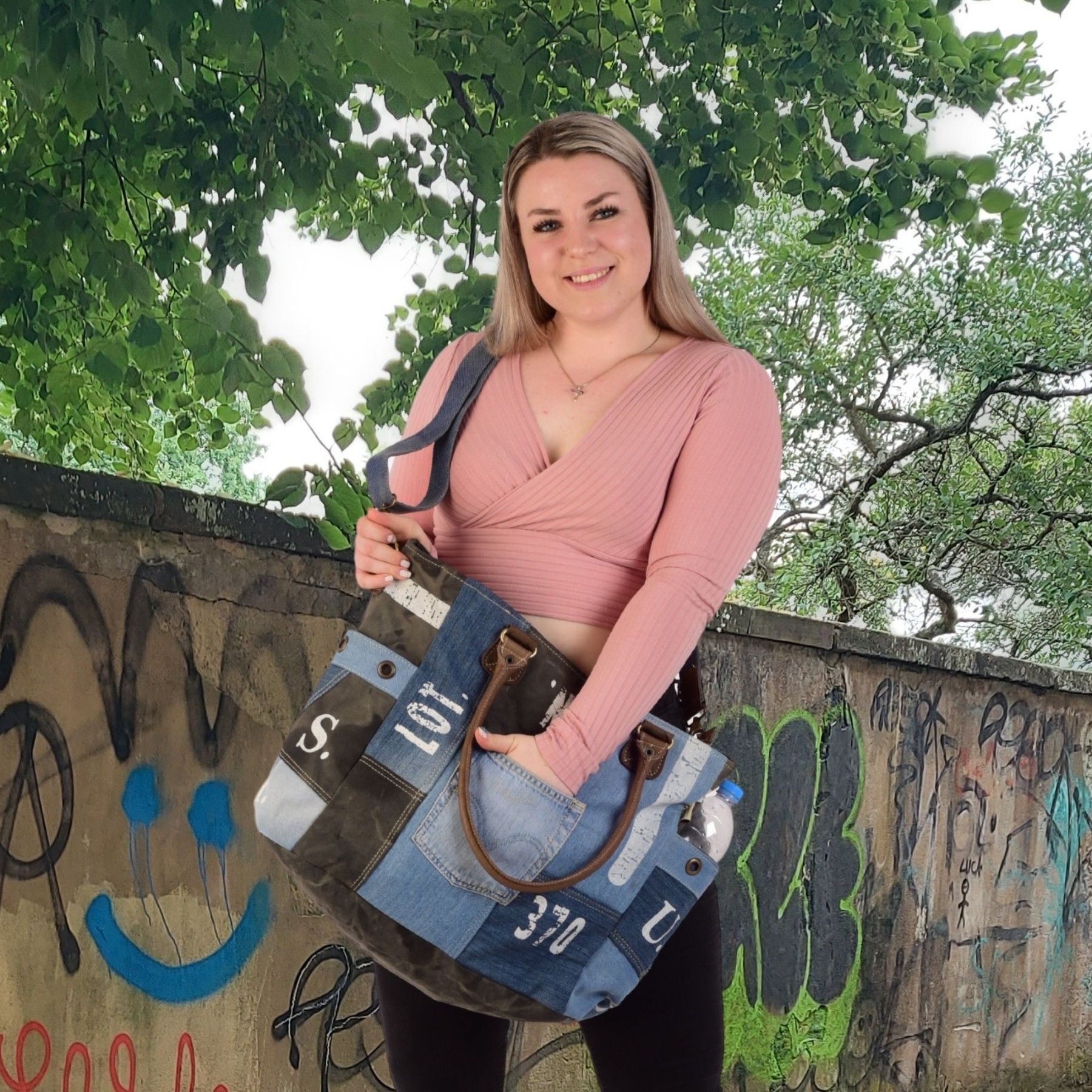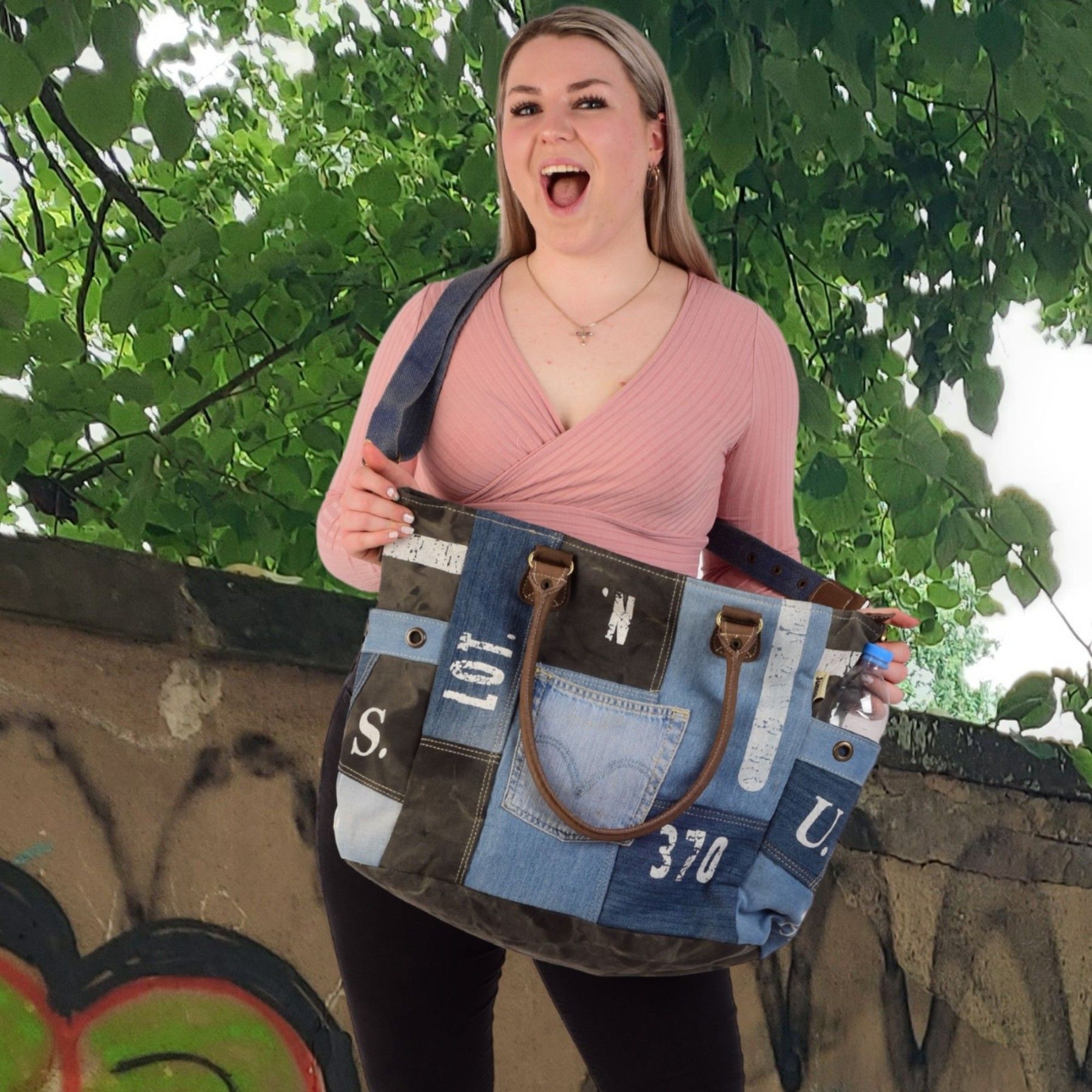 Sunsa Sunsa XXL Vintage Tasche, Badetasche Weekender Shopper aus recycelte Jeans & Canvas