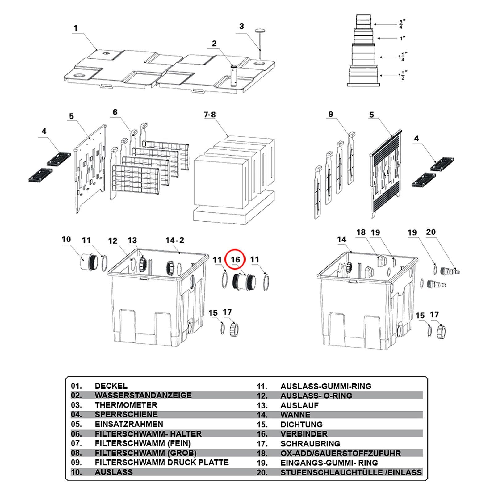 SunSun CBF-350B Ersatzteil Verbindungsstück Bio Teichfilter Gehäuse Filter Teich