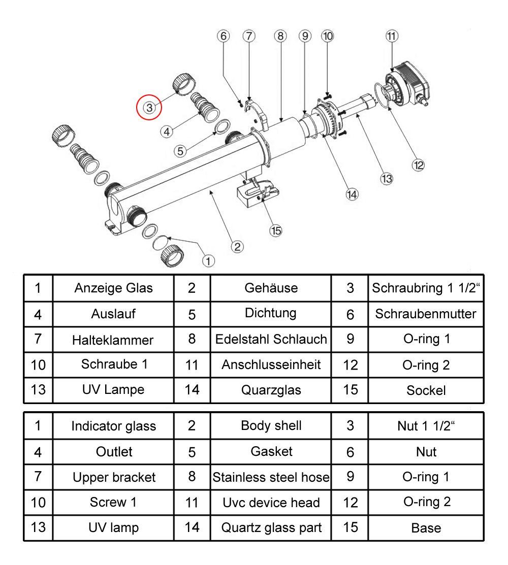 SunSun Ersatzteil CUV-324 Teichklärer Schraubring Teichfilter UVC Filter Zubehör
