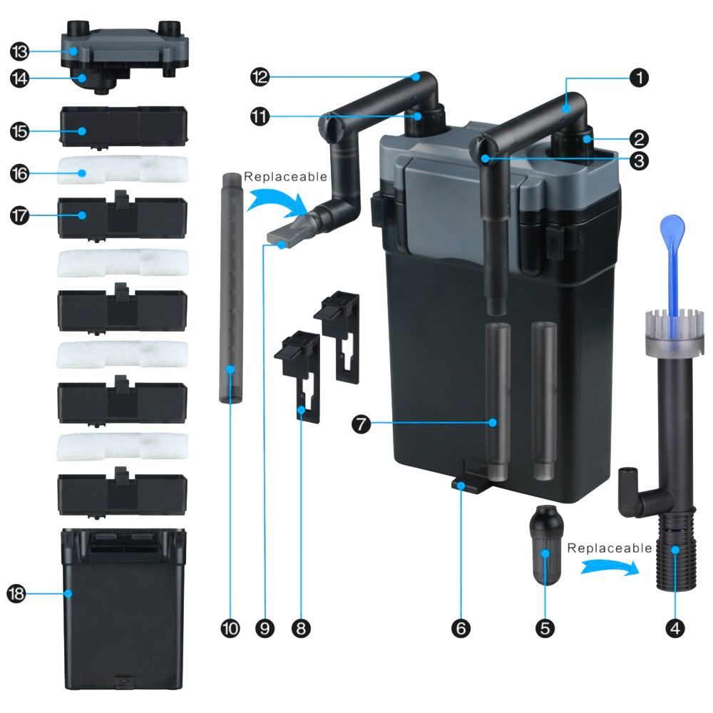 SunSun HBL-802 Hang On Filter Anhängefilter 500 l/h 6 W 100 l Aquarium Filter