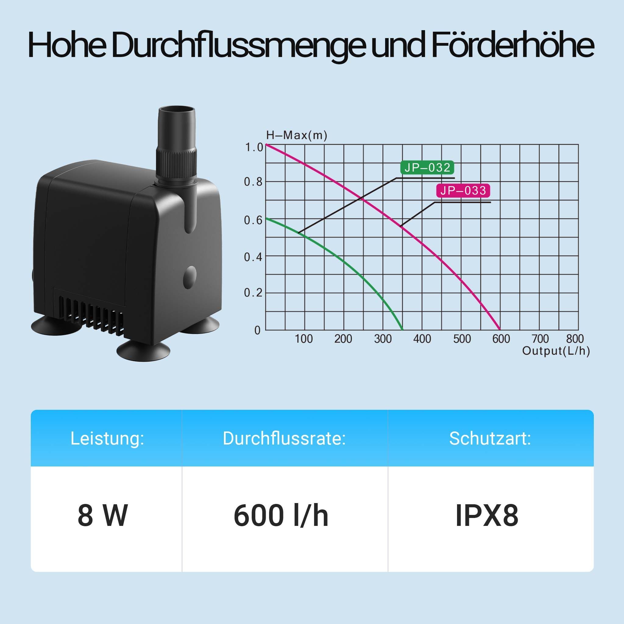 SunSun JP-033 Aquariumpumpe 600l/h 8W kleine Aquariumpumpe für Mini Aquarium 25L