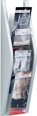 • helit Wand-Prospekthalter, DIN lang, 4 F„cher, silber