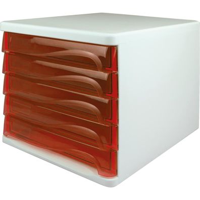 • helit Schubladenbox, 5 Sch?be, weiá/rot-transparent
