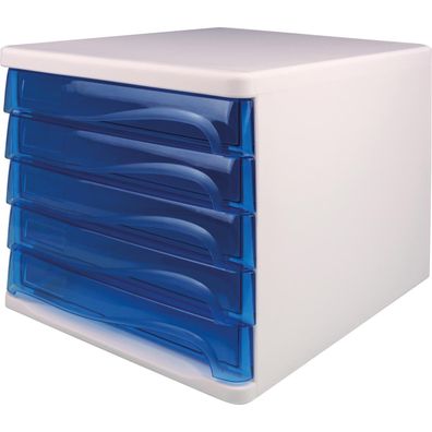 • helit Schubladenbox, 5 Sch?be, weiá/blau-transparent