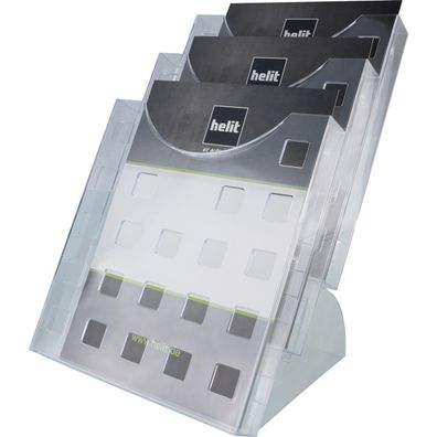 • helit 3er Tisch-Prospekthalter, DIN A4 hoch, glasklar