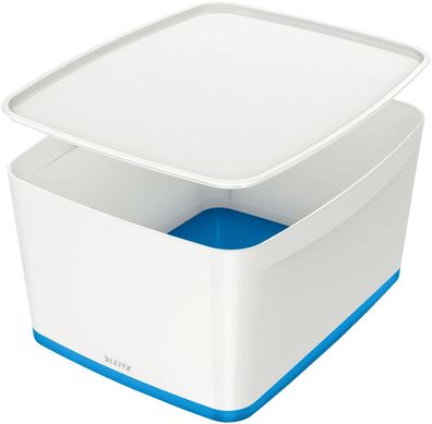 • Leitz 5216-10-36 5216 Aufbewahrungsbox MyBox Groß - A4, mit Deckel, ABS, weiß/blau
