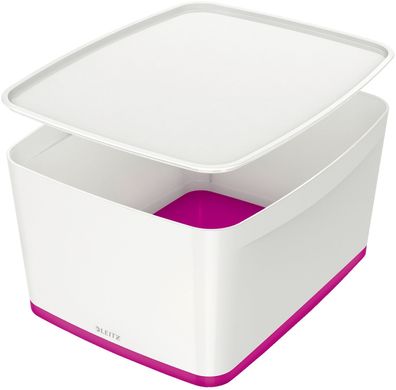 • Leitz 5216-10-23 Aufbewahrungsbox MyBox Groß A4 mit Deckel ABS weiß/pink(S)