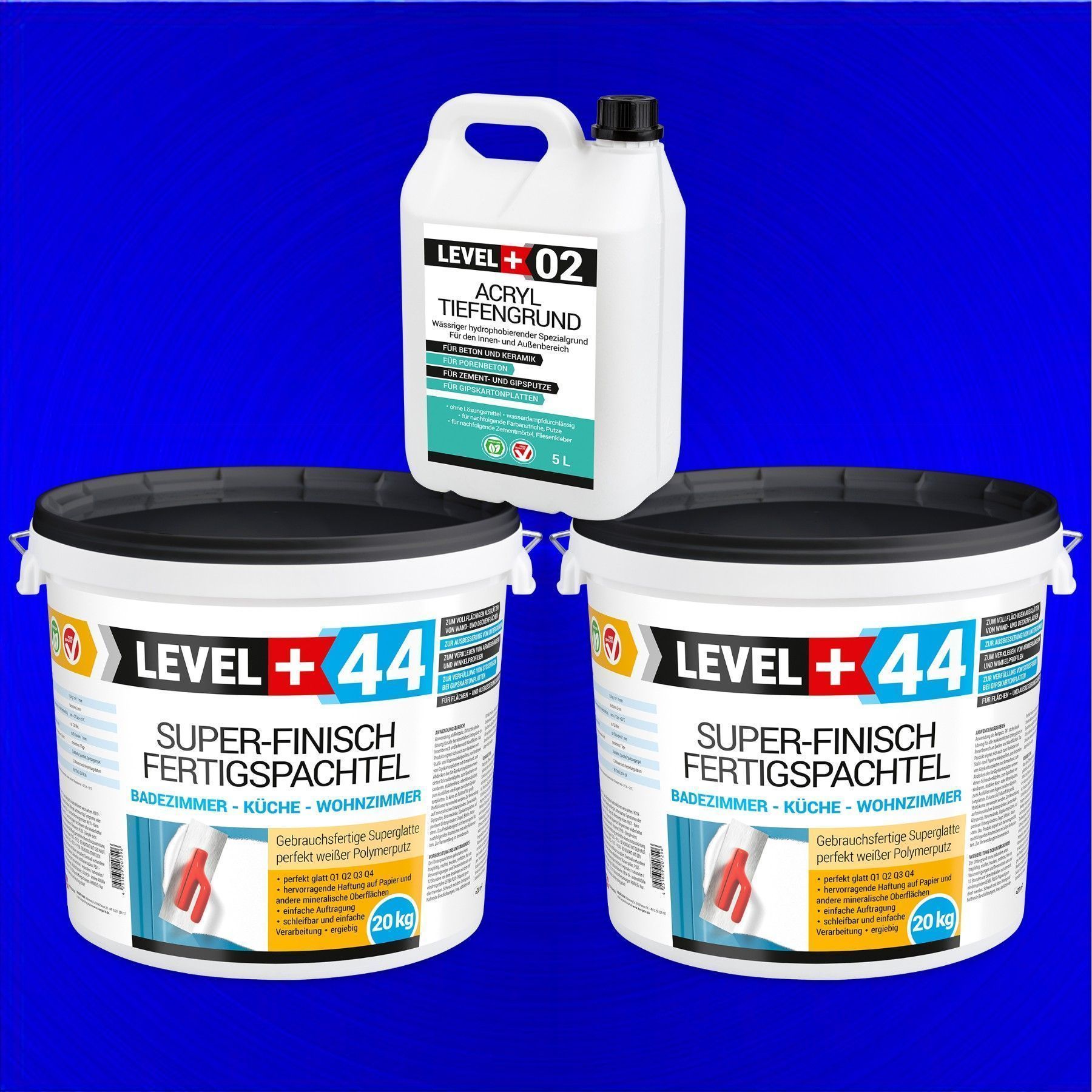 SUPER-FINISH Fertig Spachtel Masse 40kg + Acryl Tiefgrund 5L SET605