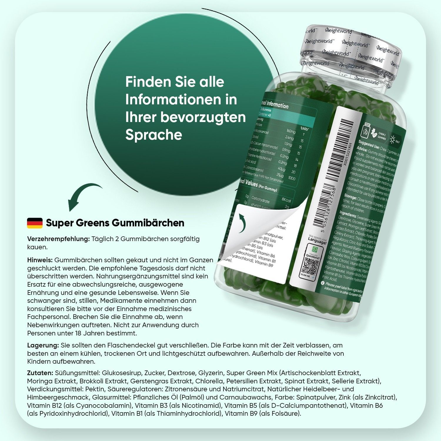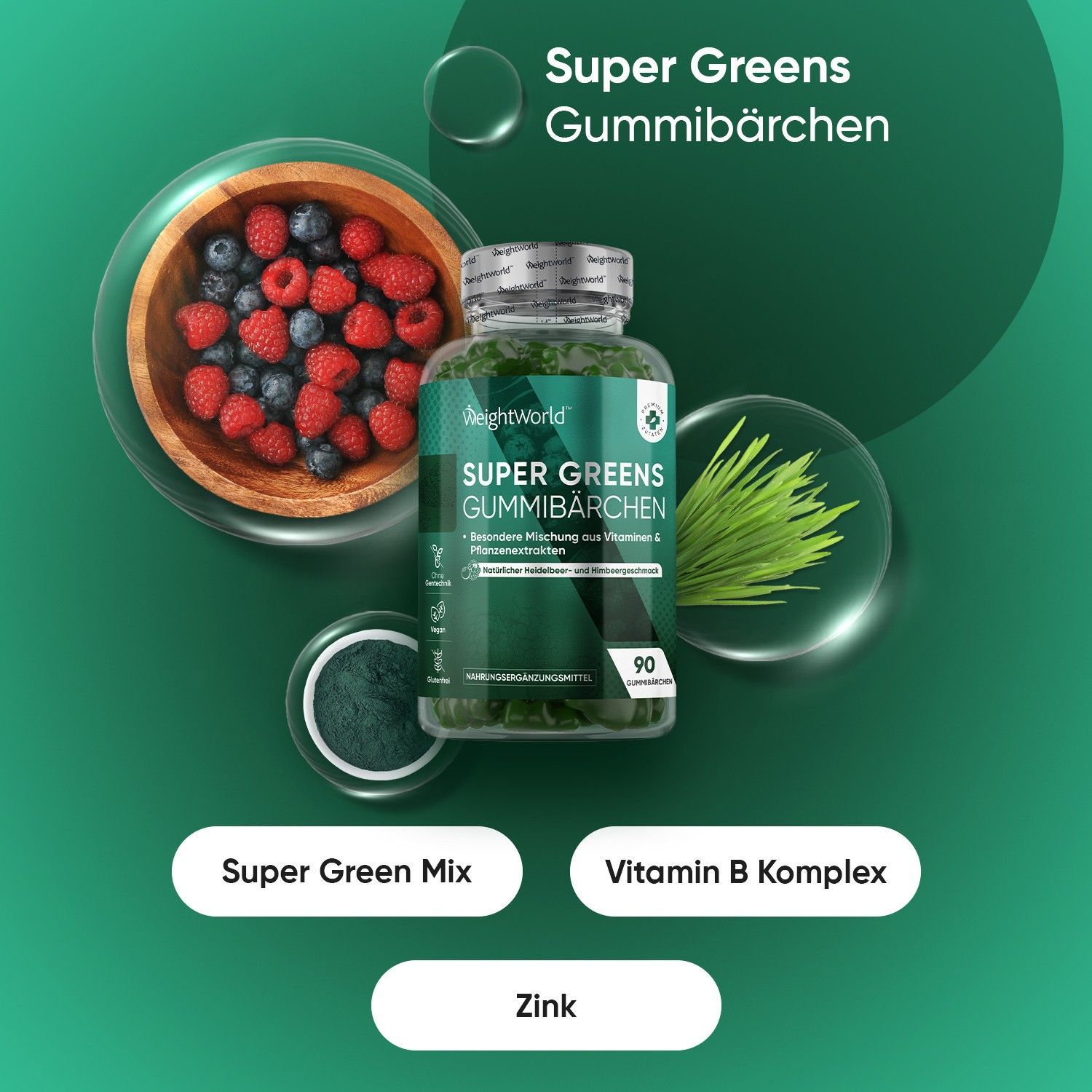 Super Greens Gummibärchen - 90 Vegane Multivitamin Gummies - WeightWorld - 3 Flaschen