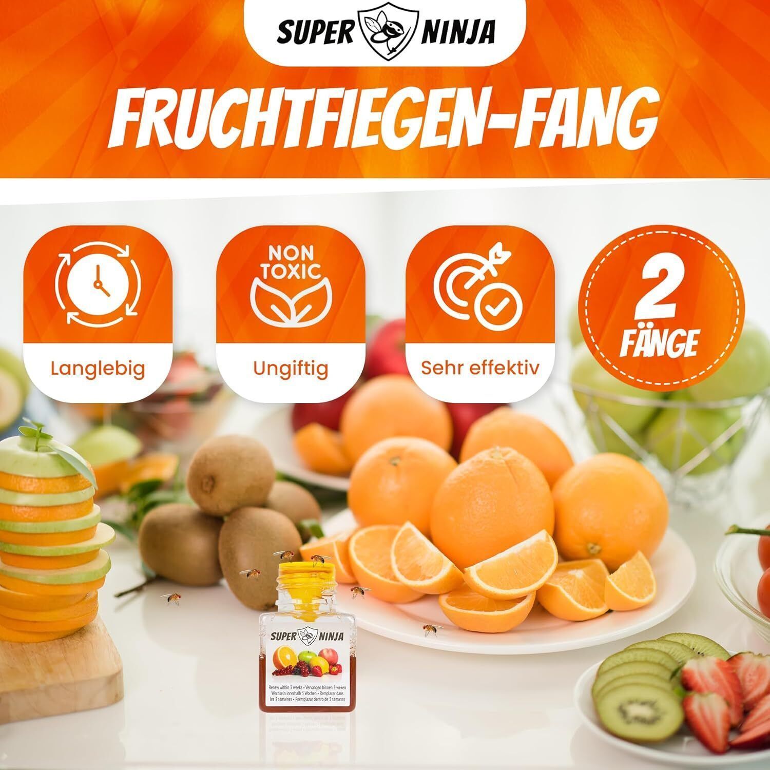 Super Ninja Fruchtfliegenfalle - Standard Pack - 2 Fallen pack - Hochwirksame