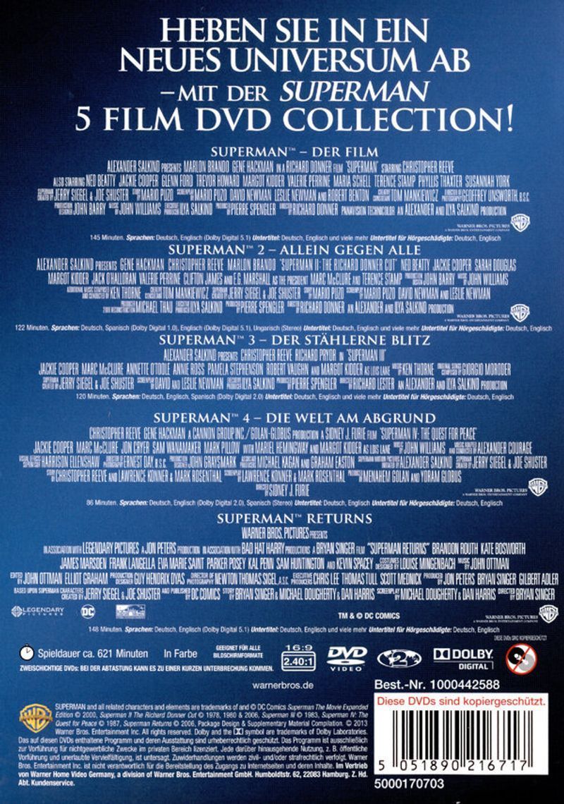 Superman 1 - 5 BOX (DVD) Film-Collection 5DVDs - WARNER HOME 1