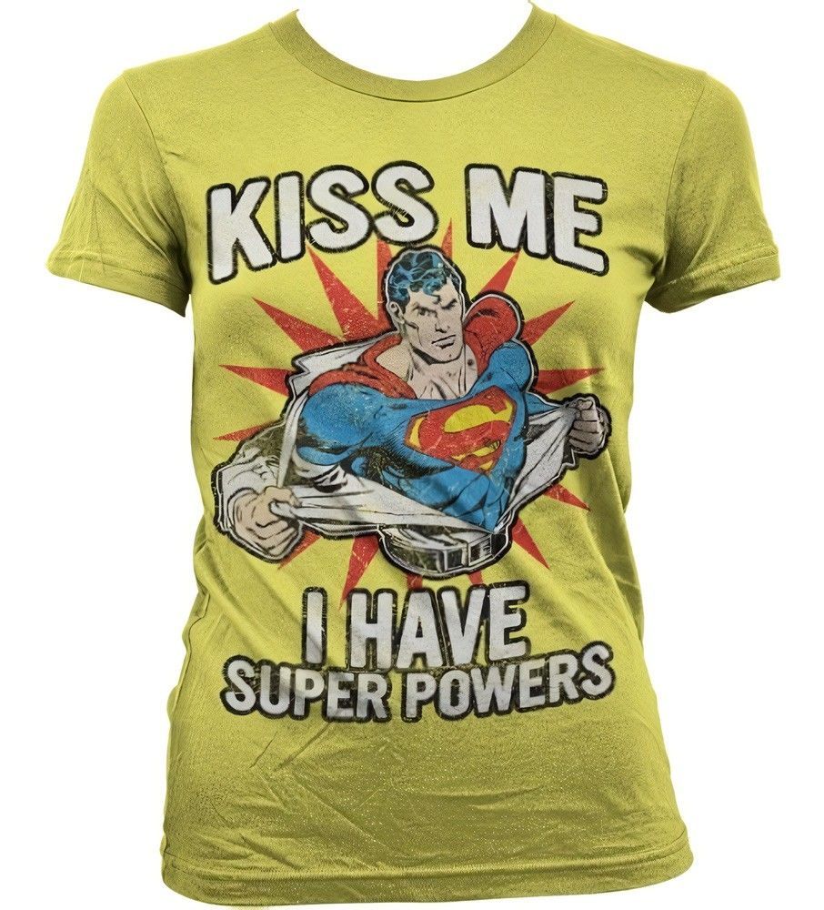 Superman Kiss Me I Have Super Powers Girly T-Shirt Damen Yellow
