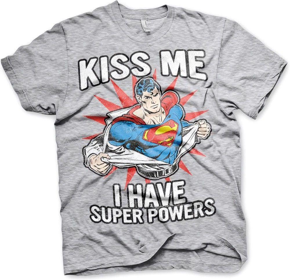 Superman Kiss Me I Have Super Powers T-Shirt Heather-Grey
