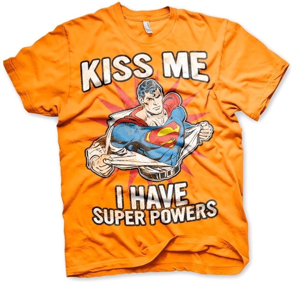 Superman Kiss Me I Have Super Powers T-Shirt Orange