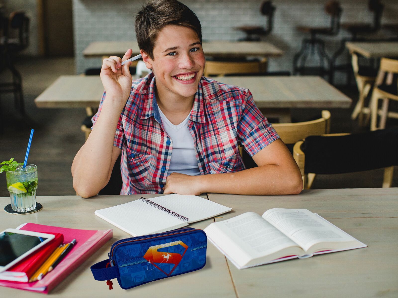 Superman Mäppchen Blue Doppel Etui Federmäppchen für Schule und Alltag