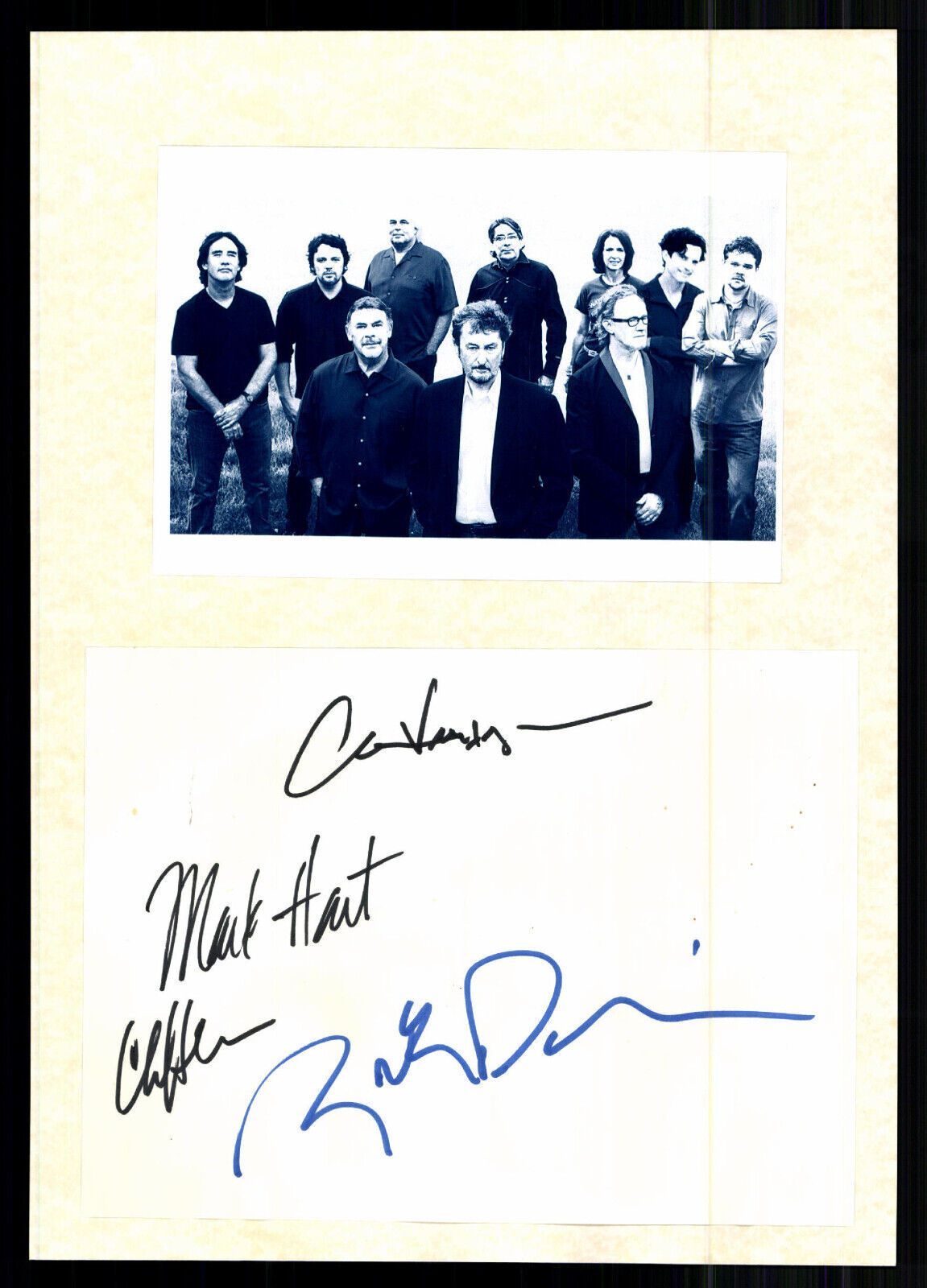 Original handsigniertes Passepartout!!! signiert von : Rick Davis, Mark Hart , Carl Verheyen und Cliff Hugo Größe : 20x 30 cm Art des Autogramms : Original handsigniert (kein Druck oder ähnliches) Garantie: Lebenslange Garantie auf alle meine Original Autogramme. Sollte irgend ein Autogramm mal nich