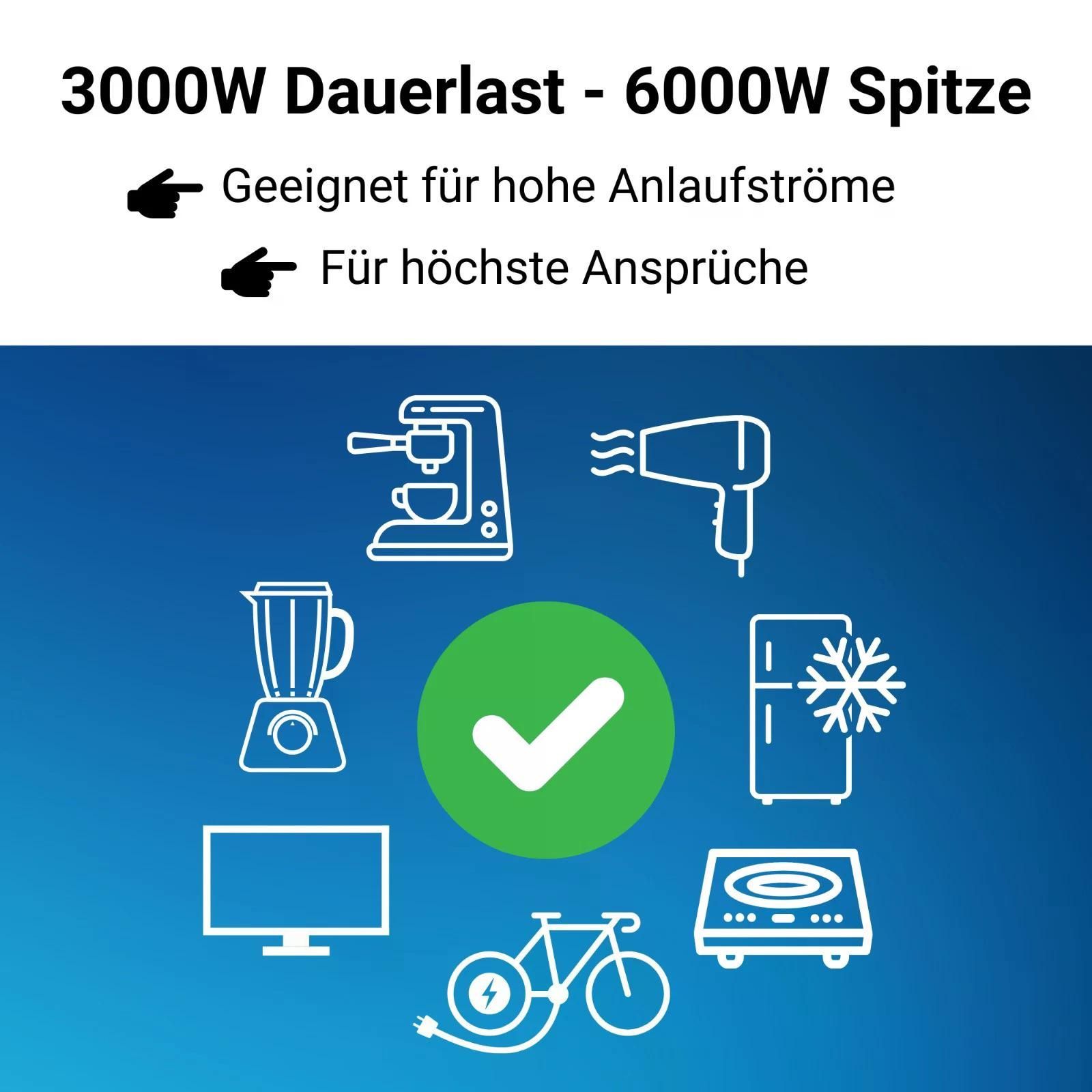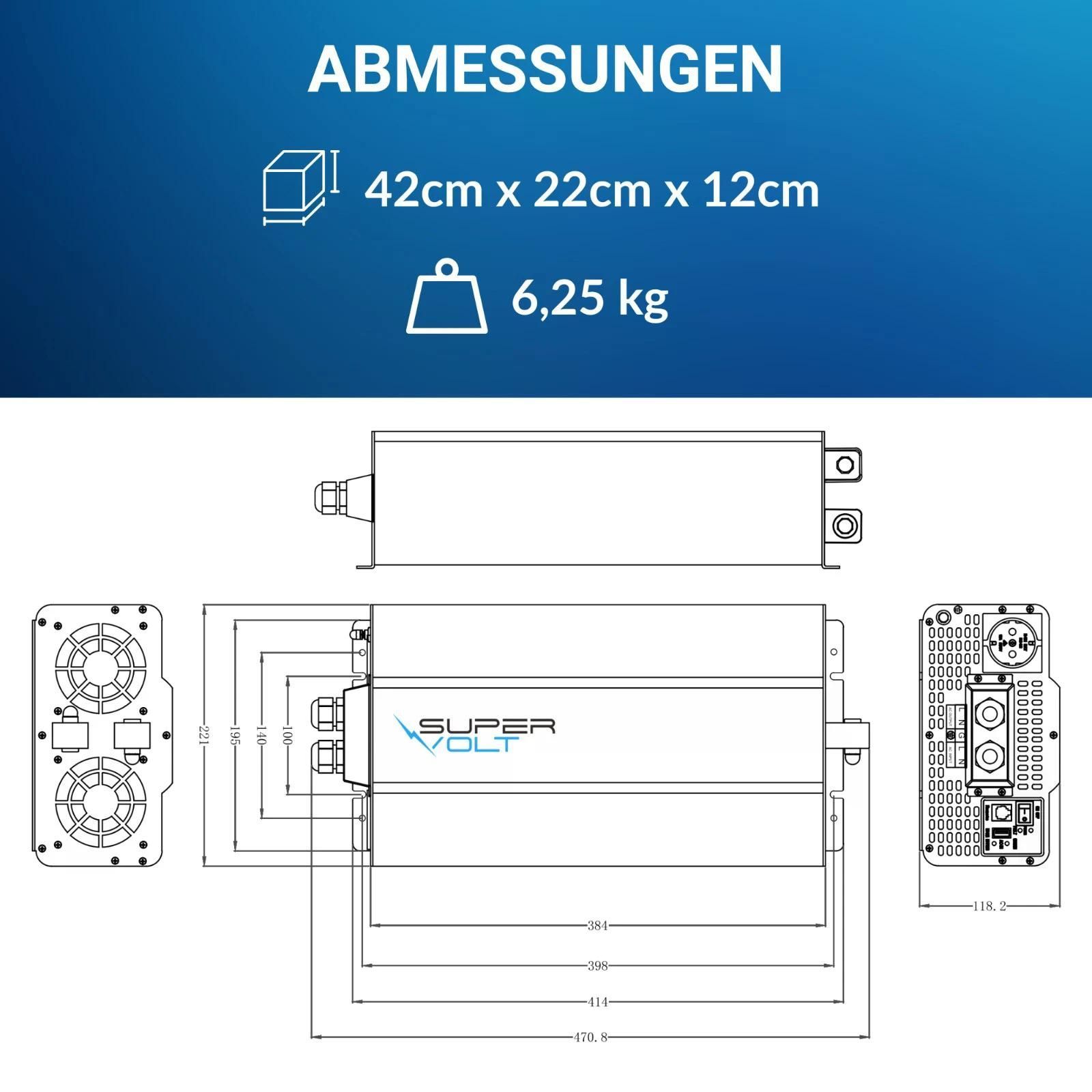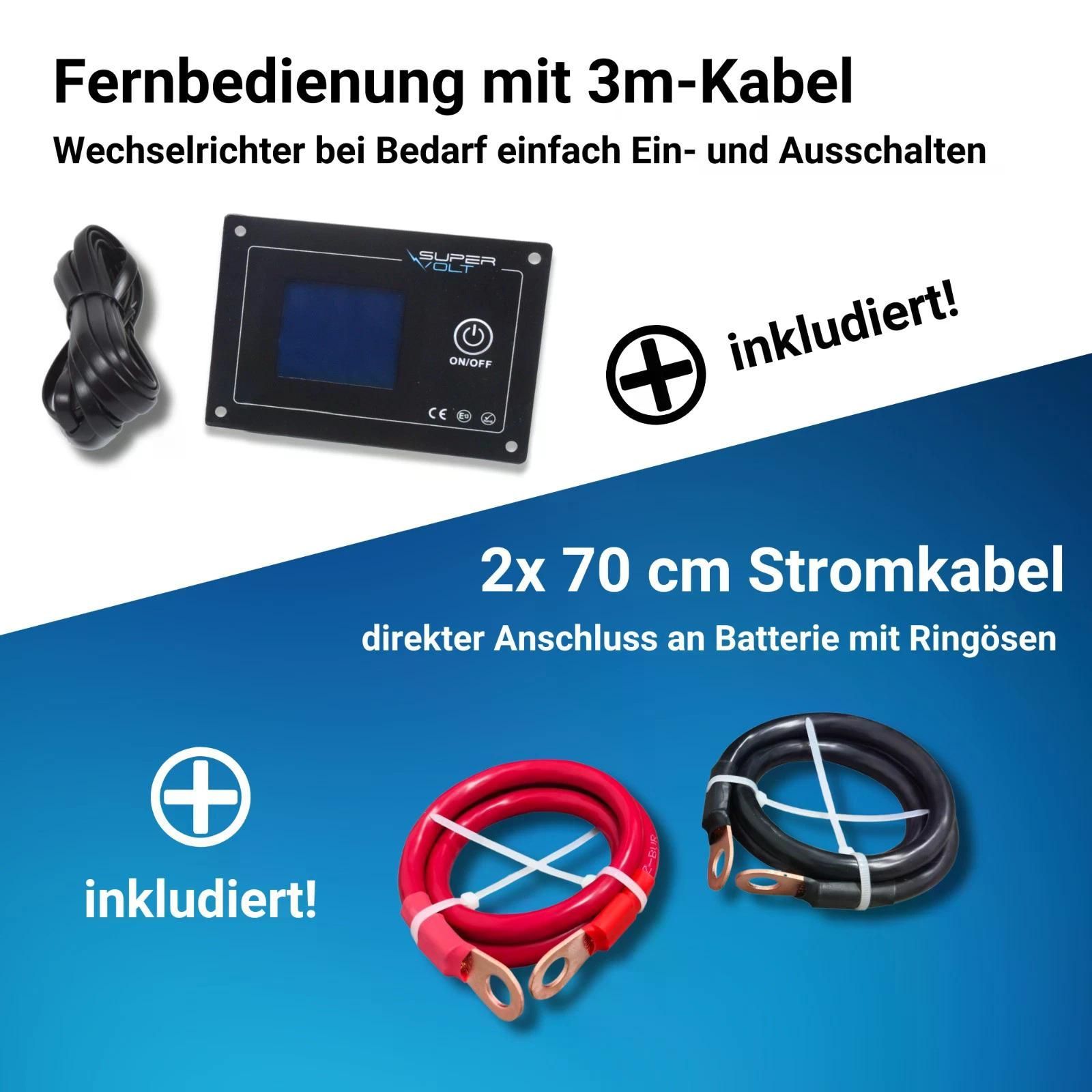 Supervolt 12V 3000W Wechselrichter – Reiner Sinus, Netzvorrang, Wohnmobil & Boot