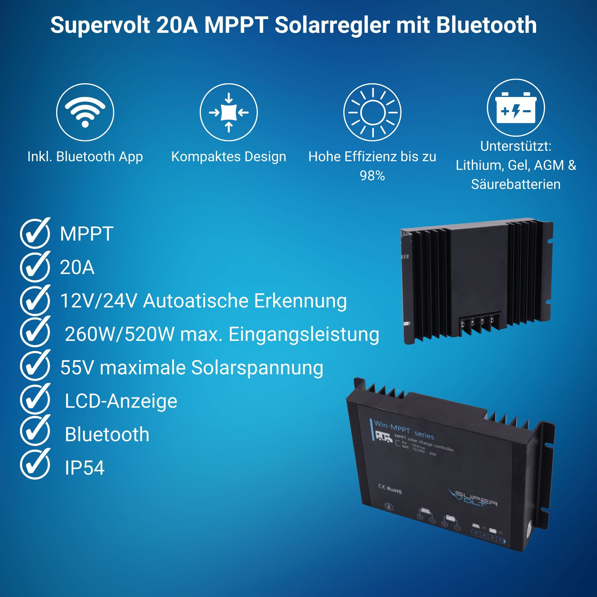 Supervolt LiFePO4 Solarregler MPPT Ladegerät 20A mit Bluetooth