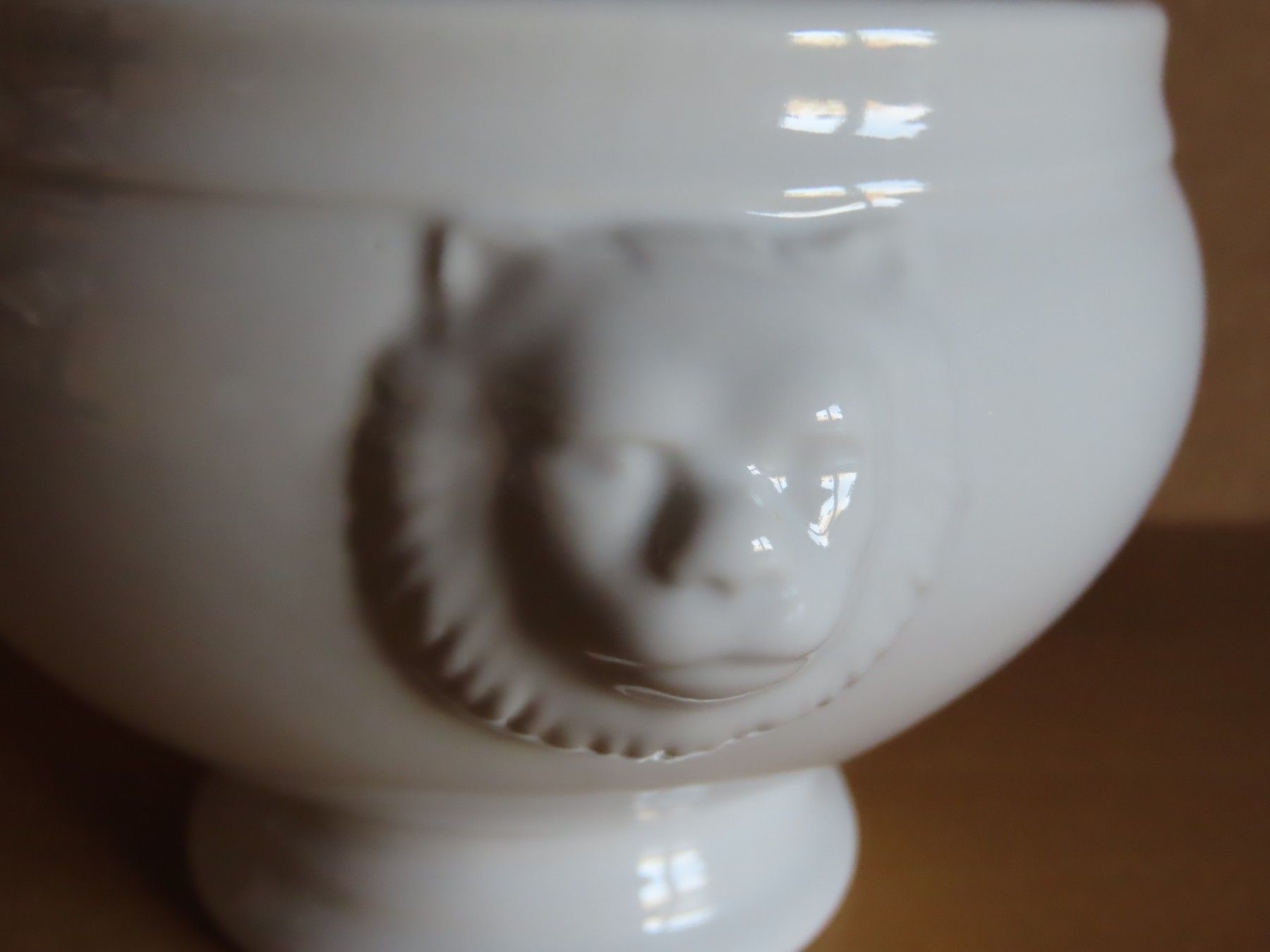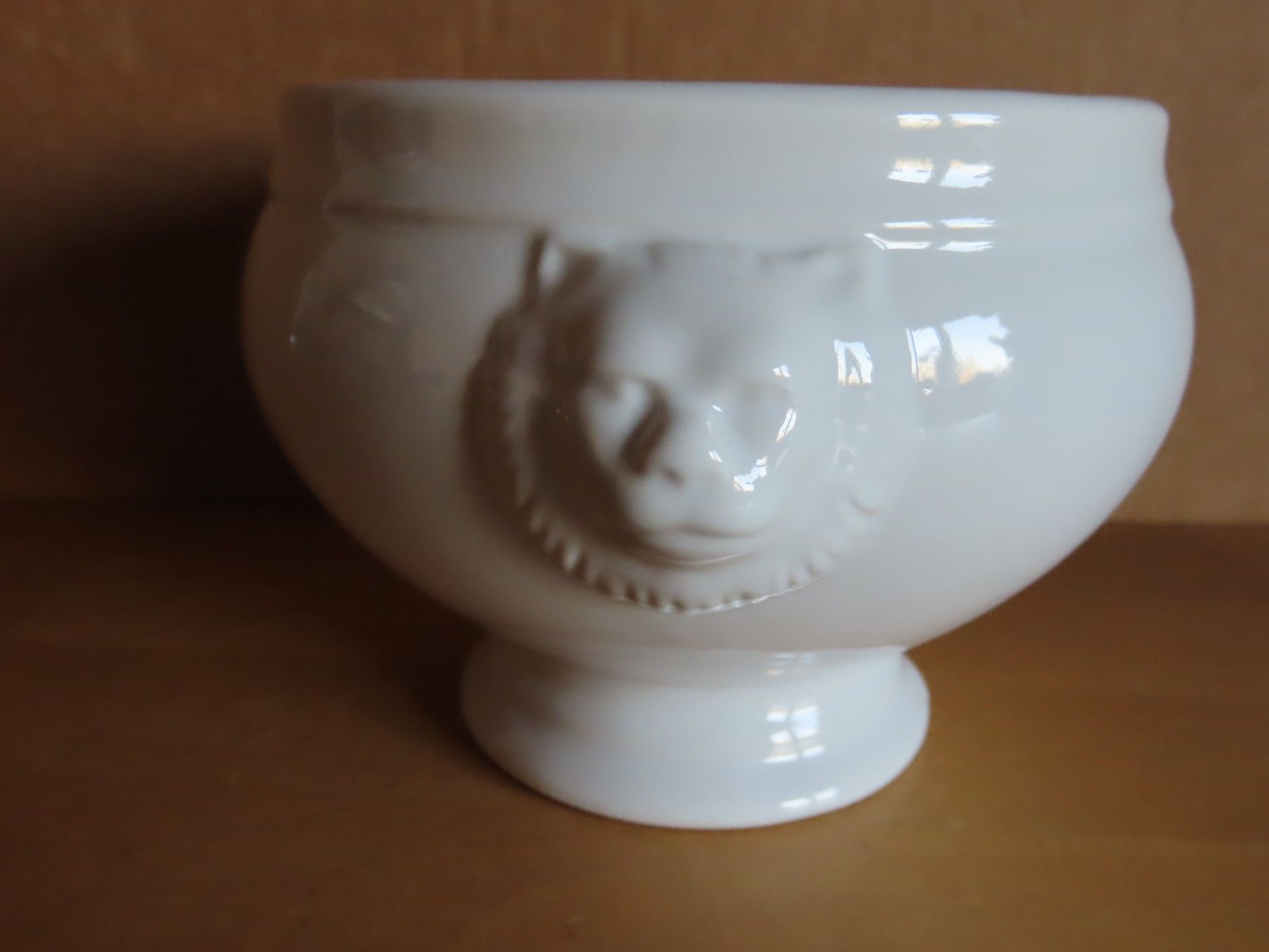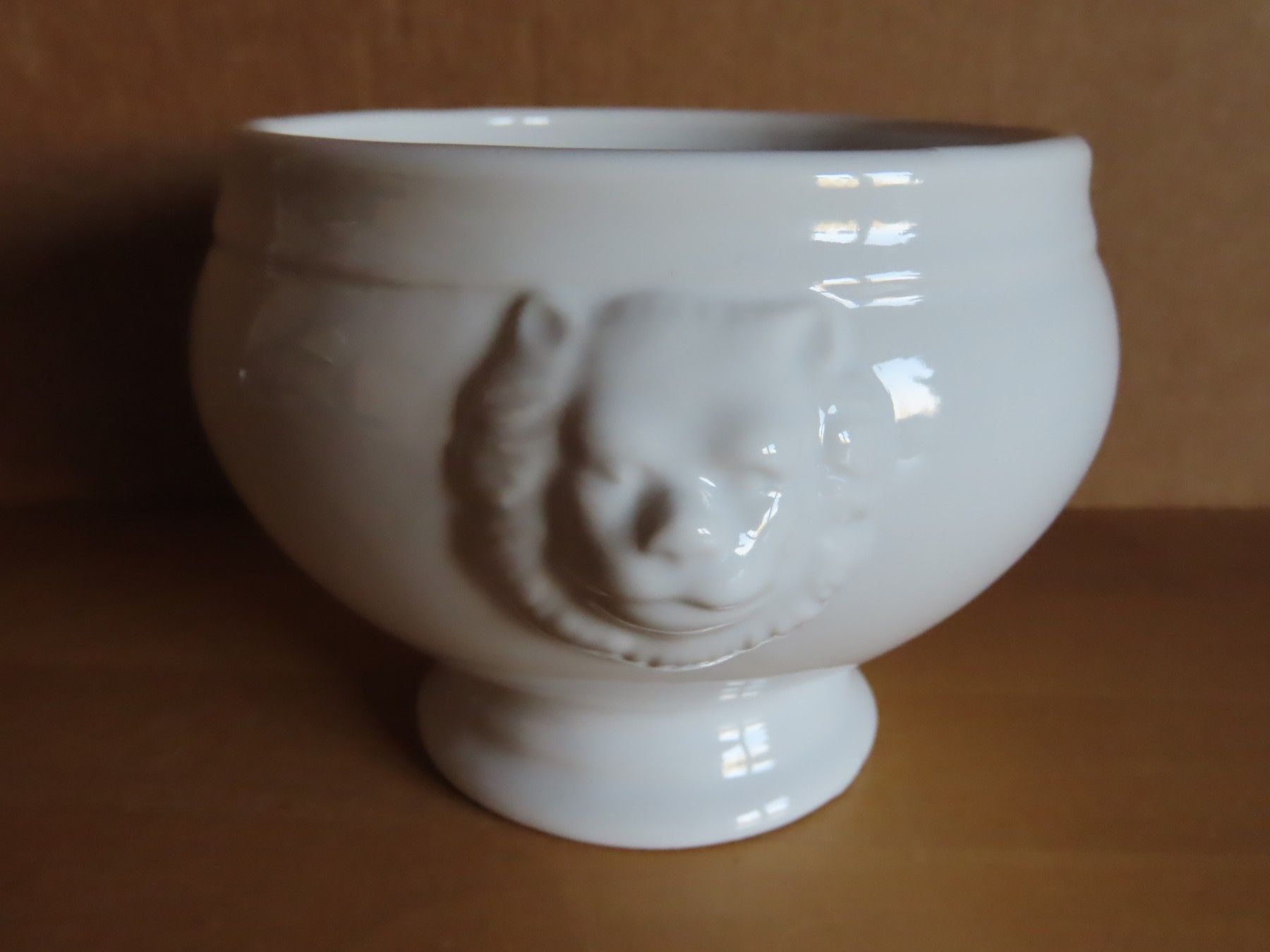 Maße: ca.9 cm hoch x 11 cm Durchmesser am oberen Rand- die Köpfe nicht mit gemessen der Boden hat einen Durchmesser von ca. 7 cm Material: Keramik ist leicht verschmutzt, hat Verarbeitungsfehler und hat feine Kratzer... Mehr
