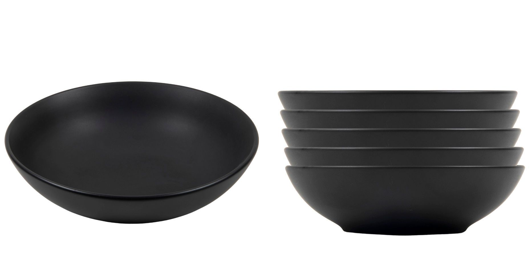 Suppenteller schwarz matt - 6er Set / 20 cm - Suppe Pasta Teller Salat Müsli Schale