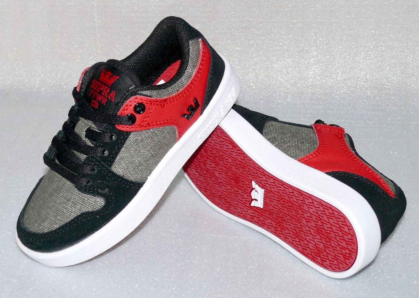 Supra Vaiders LC S86010K Junior Schuhe Sport Sneaker Black Grau Rot 35,5 UK2,5