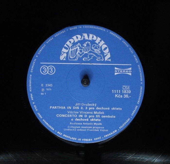 Condition Vinyl Near Mint (NM or M-) Condition Sleeve Very Good Plus (VG+) Tracks included: No. 3 For Wind Octet Composed By : Jirí Družecký I 1. > I. Allegro Assai 2. > II. Menuetto 3. > III. Andante 4. > IV. Rondo. Allegro Molto Concerto In D For Three Harpsichords And Wi