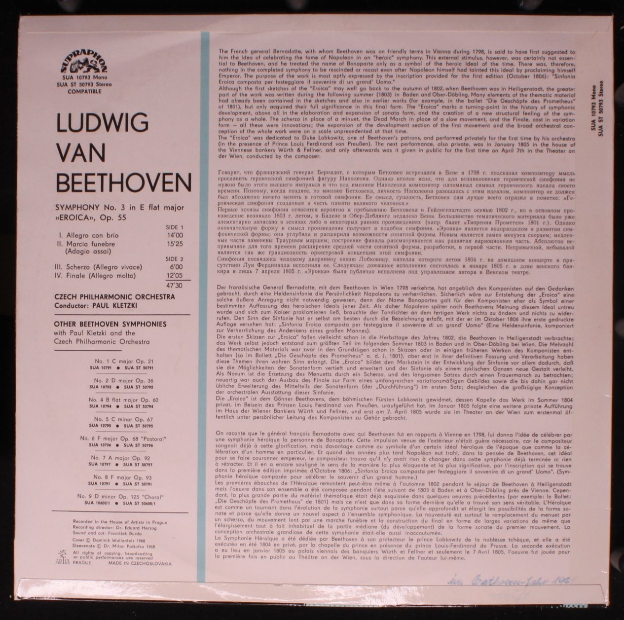 Supraphon SUA ST 50793 - Ludwig van Beethoven, The Czech Philharmonic Orchestra,