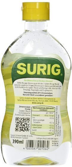 Surig flüssige Zitronen-säure 20%, 390ml 3 Varianten/ Stückzahlen