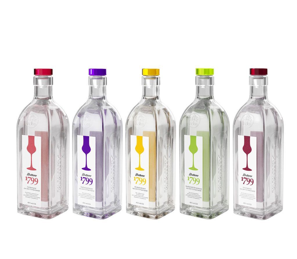 Sutterer 1799 tasting Set - 5x verschiedene Sorten Obstbrand je 0,5L (40% Vol)