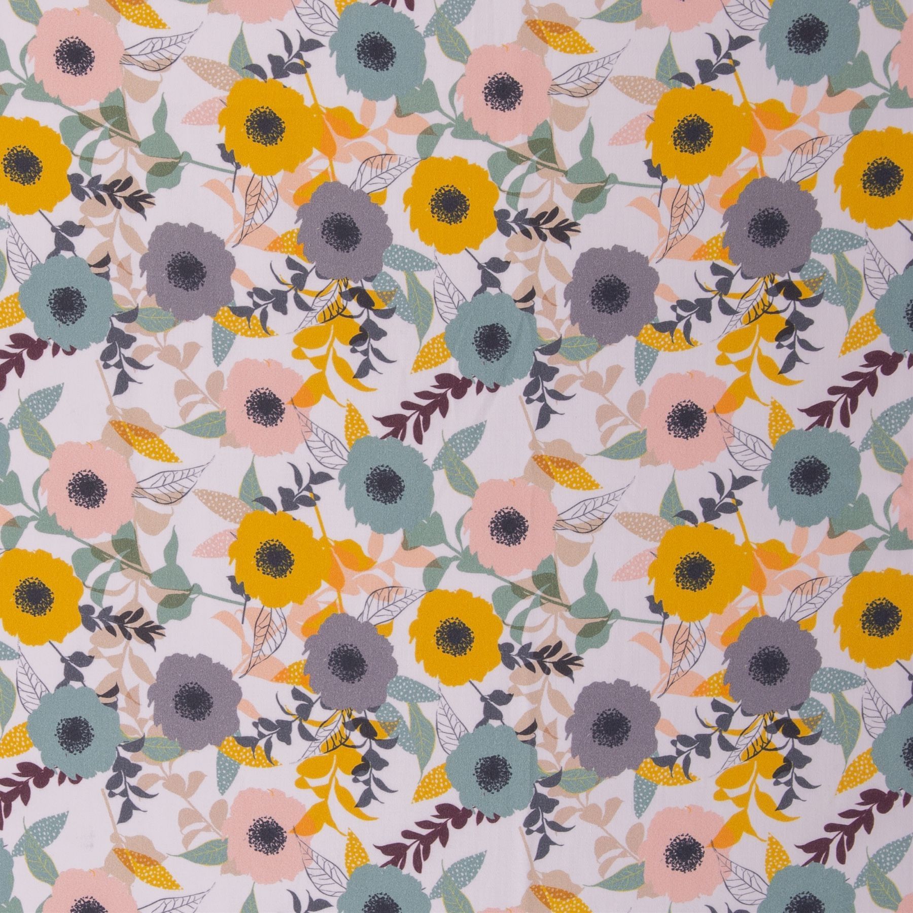 Swafing Baumwollsatin Stoff Martha Blumen weiß VE 0,25 m
