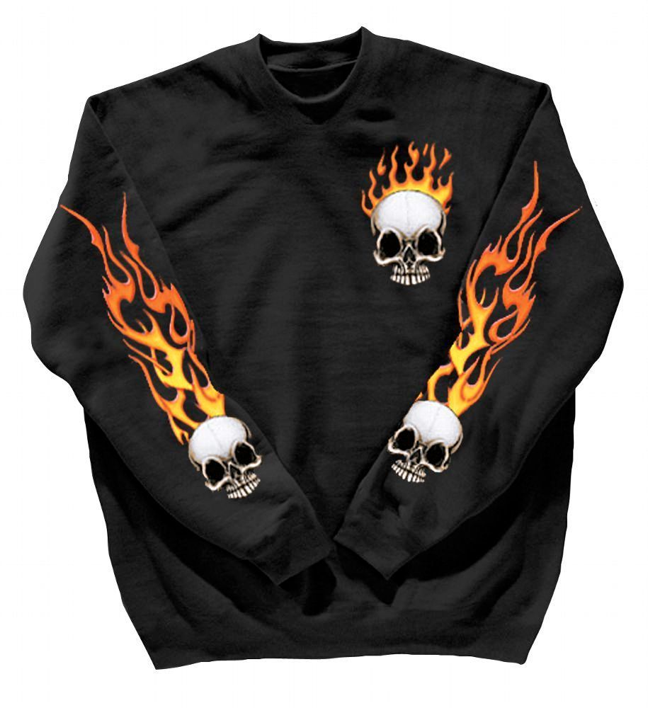 Sweatshirt mit Print - Totenkopf Fire - 10112 - versch. farben zur Wahl - schwarz / X
