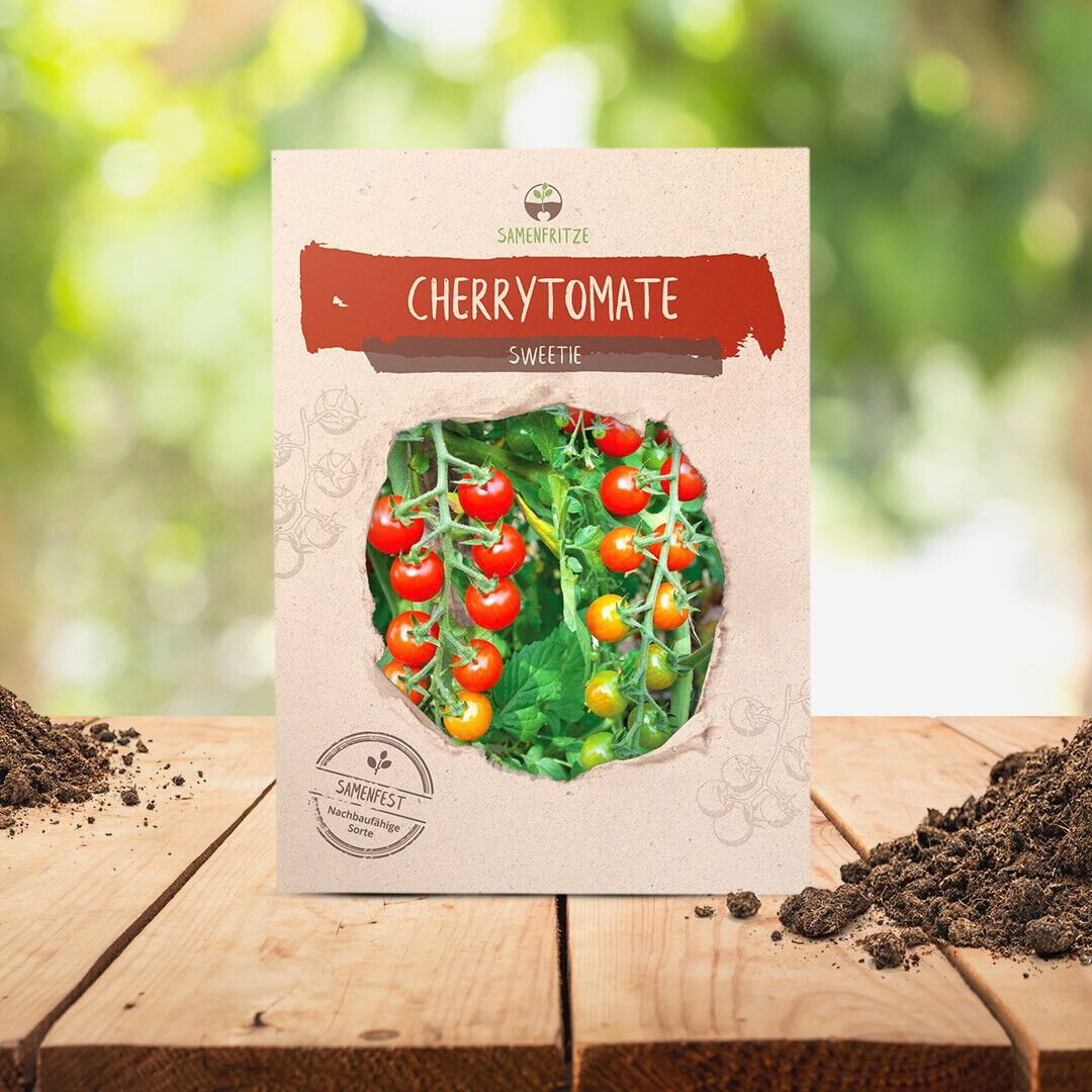 Die Sweetie ist eine ertragreiche Cherrytomate. Ihre Pflanzen sind kältetolerant, robust, vertragen mehrere Triebe und kommen auch im Freiland zurecht. Die unzähligen Früchte wachsen an langen Rispen, sind aromatisch, süß und platzfest. Fruchtfarbe: Rot Fruchtgröße: Klein Fruchtgewicht: 10-15g Fruch