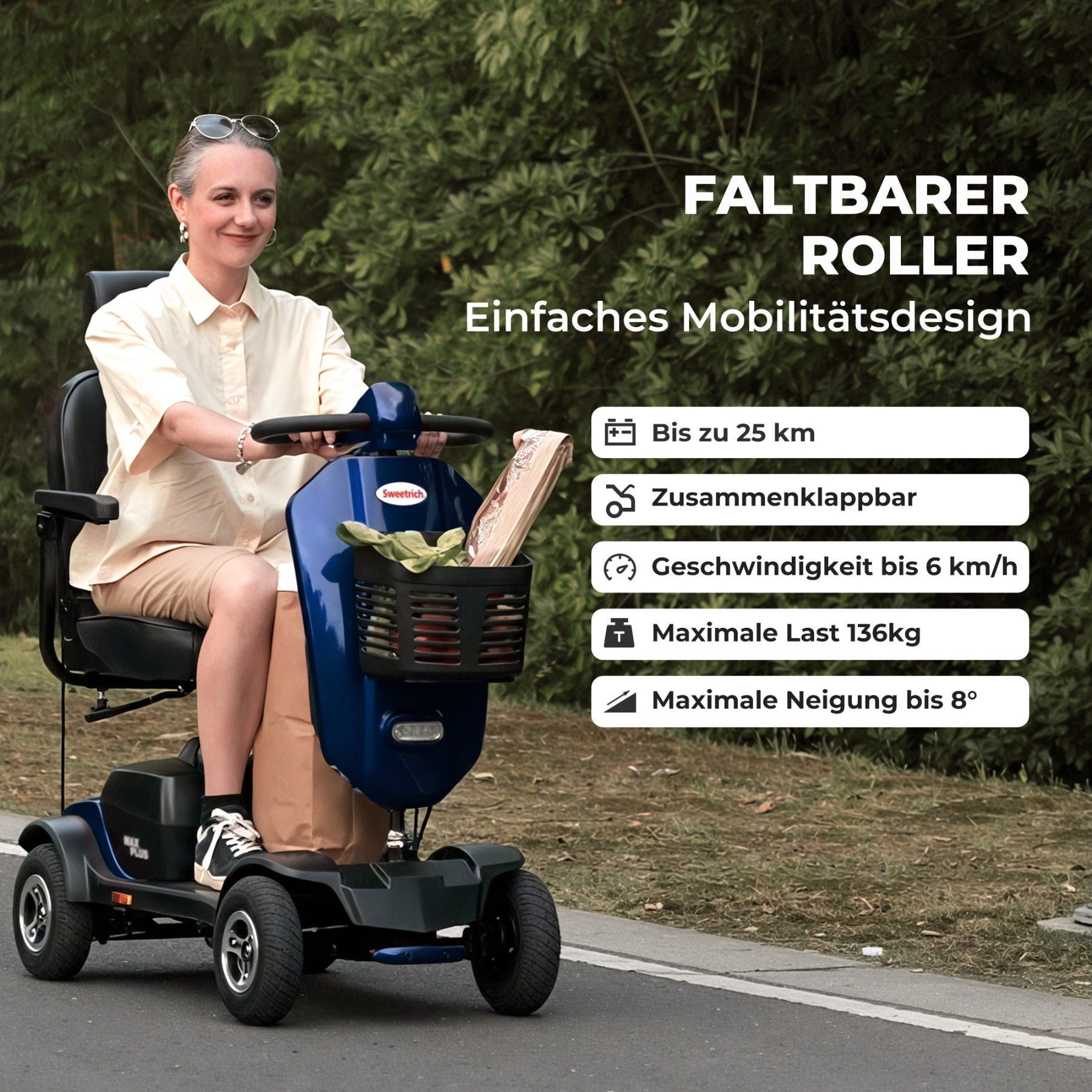 Sweetrich 300W Elektrischer Zusammenklappbarer Elektromobil 6 KM/H Reichweite 25 km