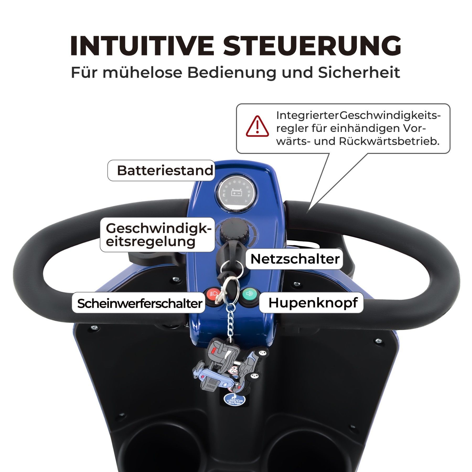 Achtung: Nur mit Geräteschutz verwenden. Nicht auf öffentlichen Straßen verwenden.
