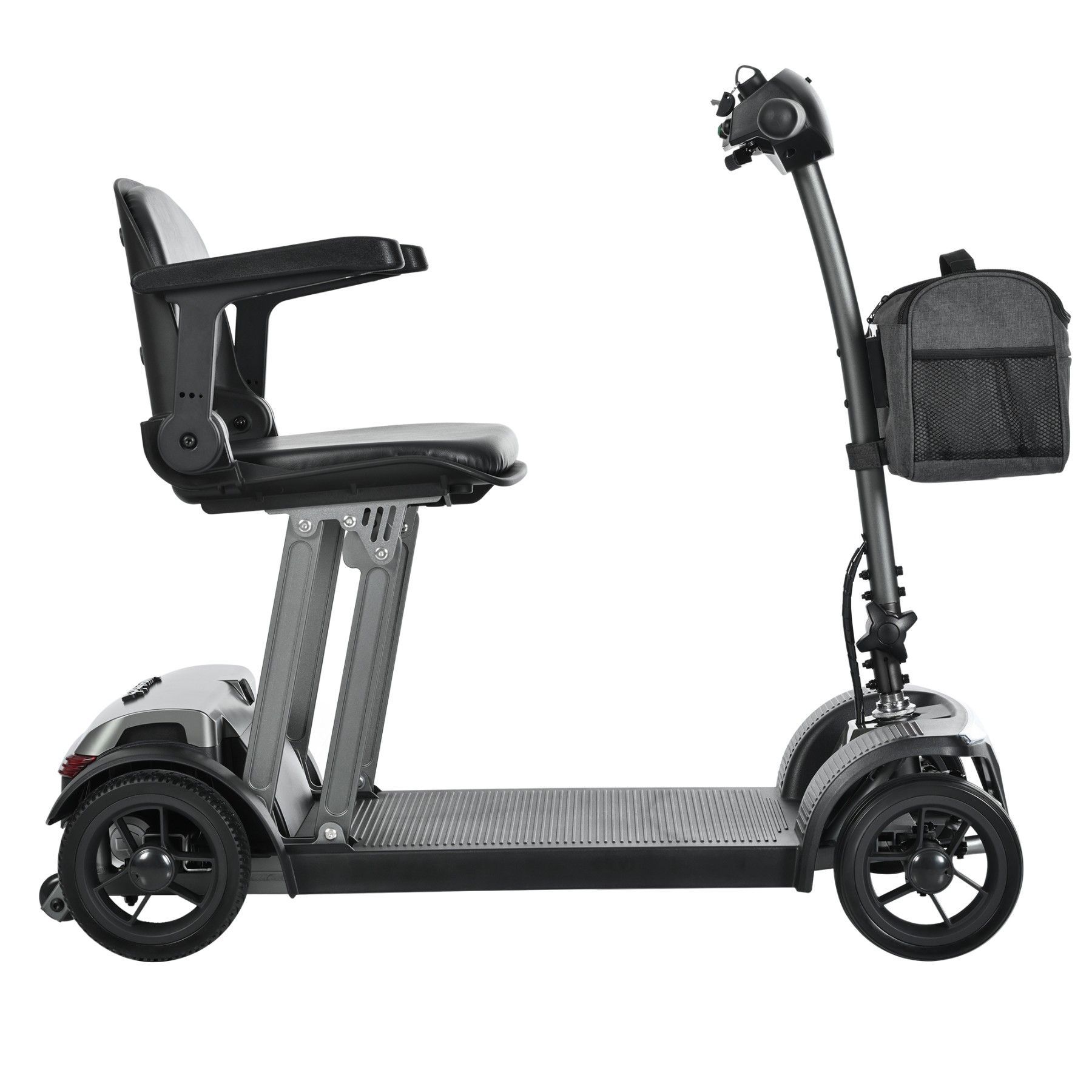 Dieser elektrische Scooter wurde für maximale Mobilität und einfache Mitnahme entwickelt. Der Aluminiumrahmen sorgt für geringes Gewicht und hohe Stabilität. Das Sitzsystem lässt sich per Knopfdruck in nur einer Sekunde zusammenklappen , wodurch der Scooter problemlos im Kofferraum verstaut werden k