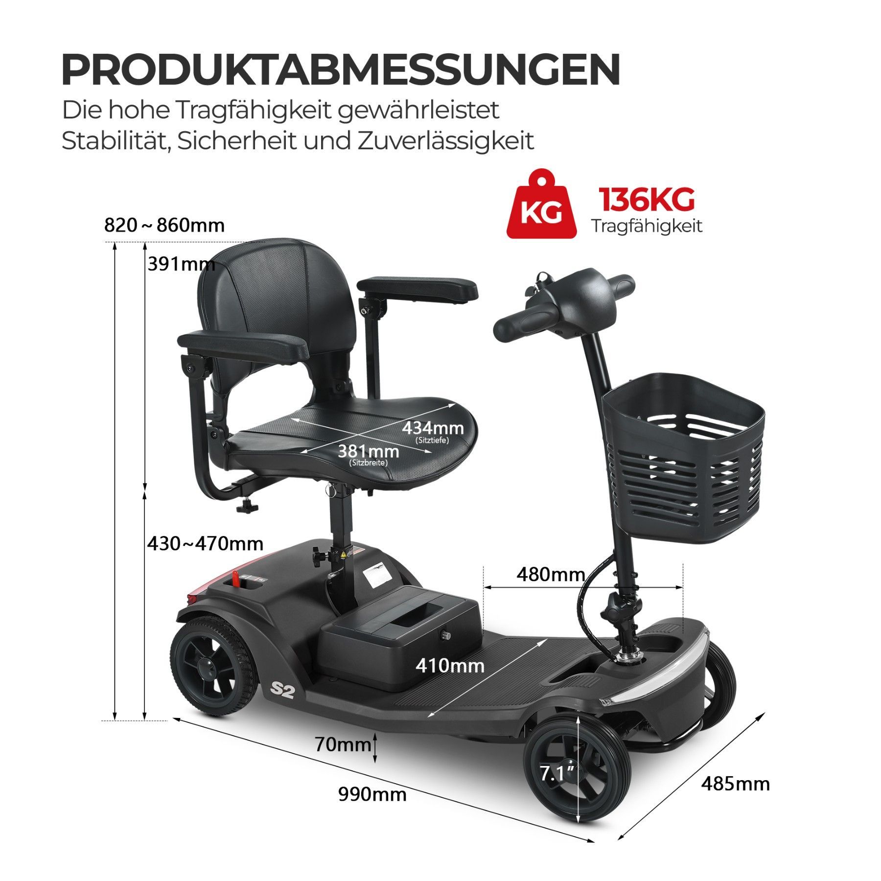 Sweetrich Faltbarer und leichter Elektromobil 12AH Lead Acid Reichweite 15 km 6km/h